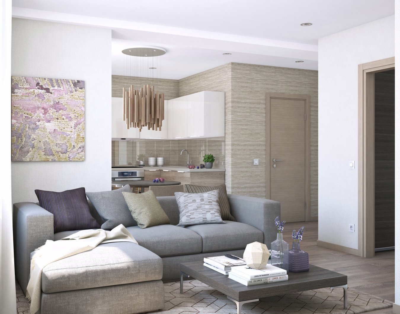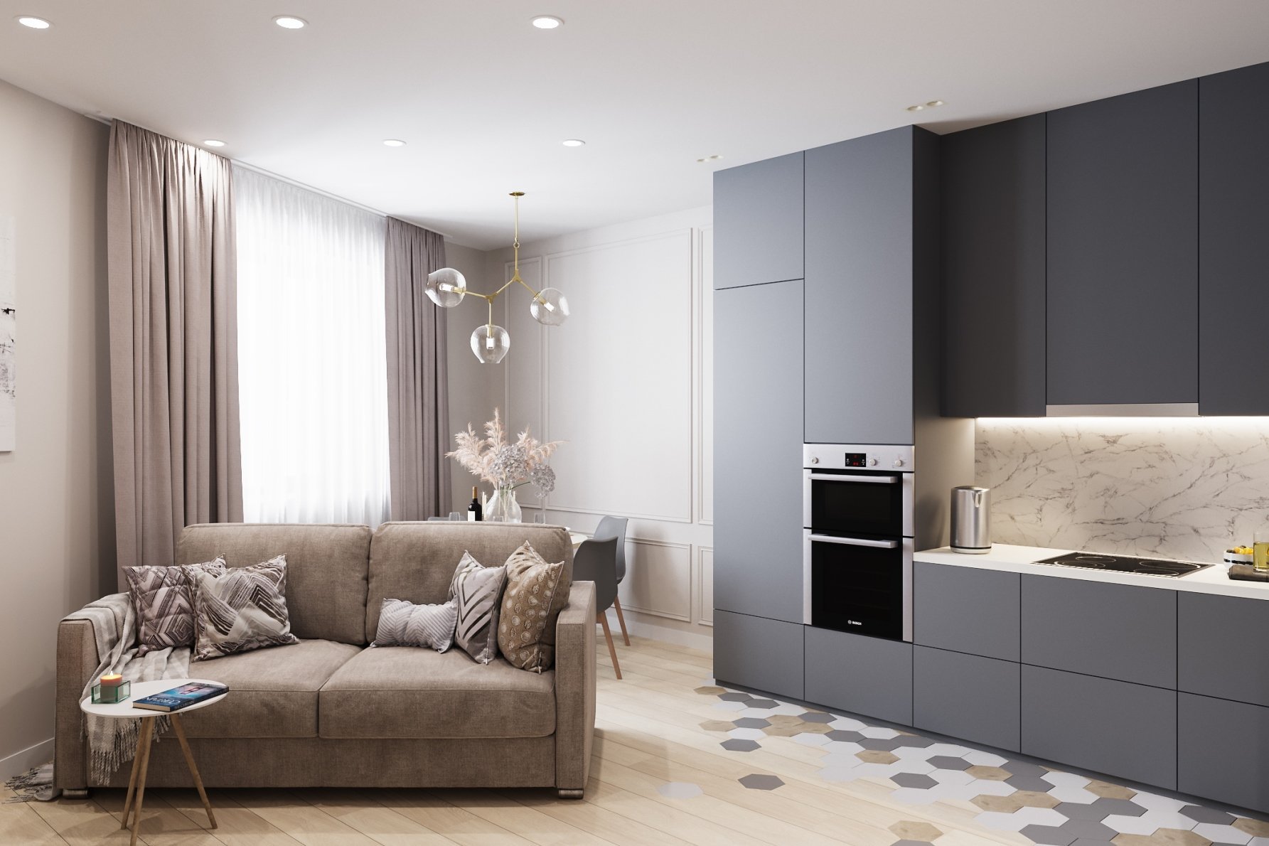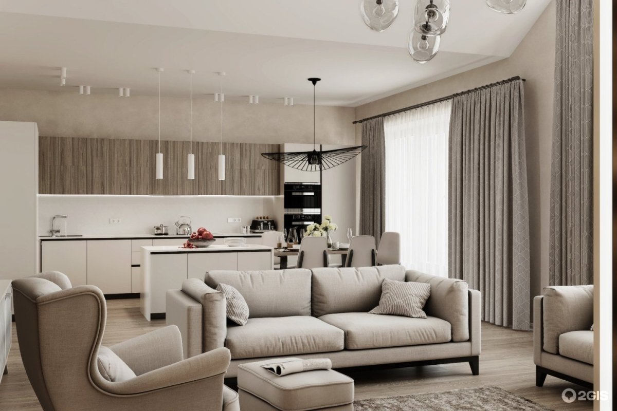 Кухня-гостиная в серо-бежевых тонах