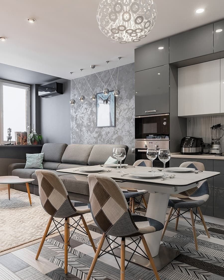 Кухня гостиная в серых тонах