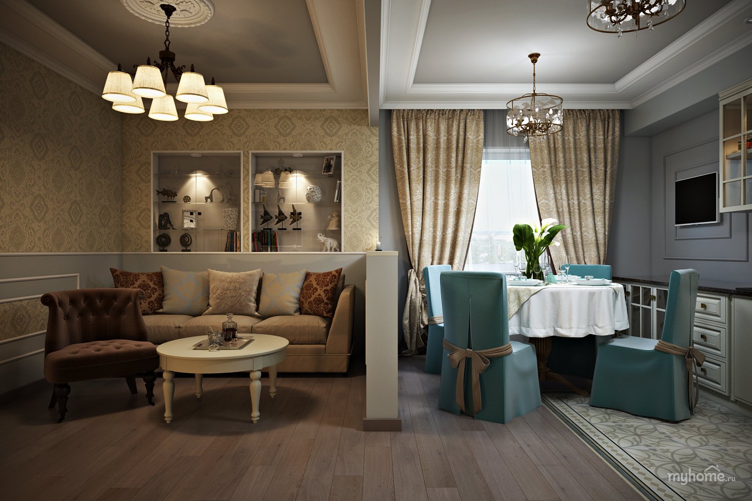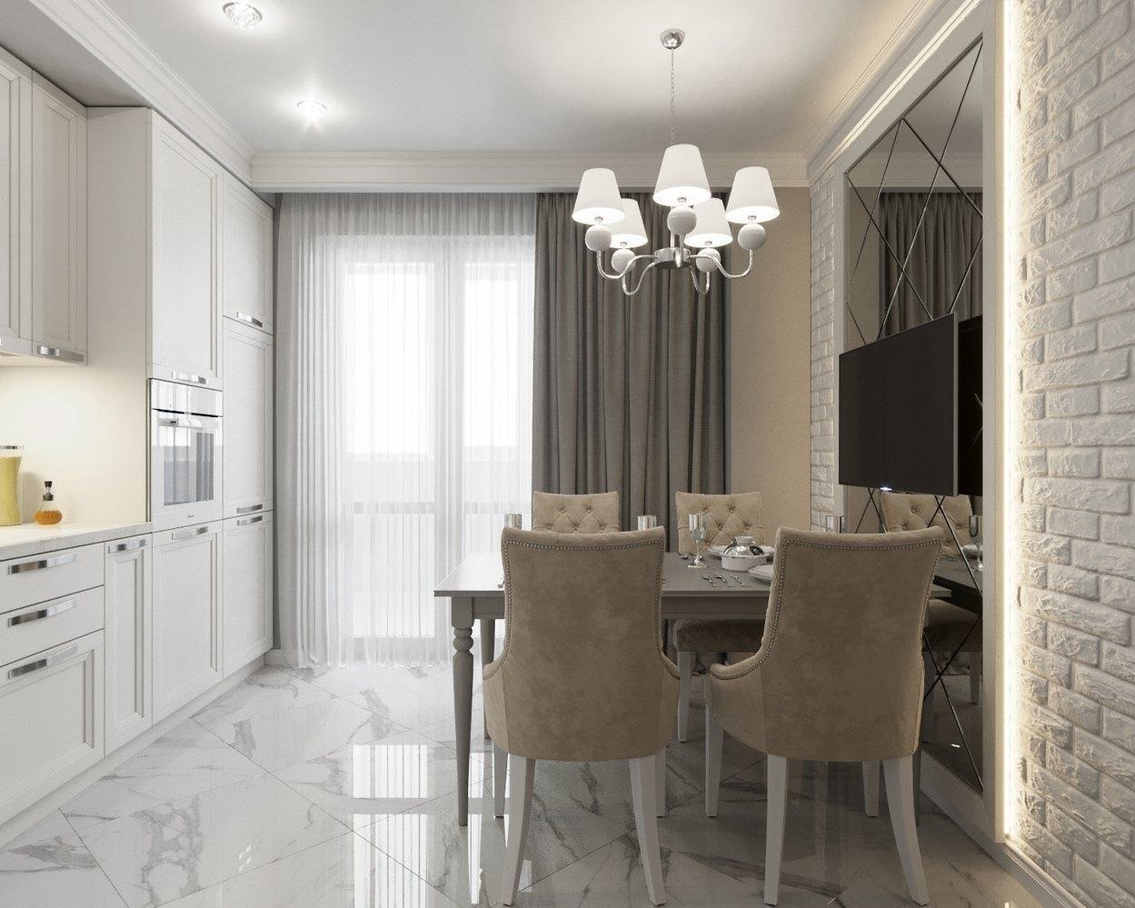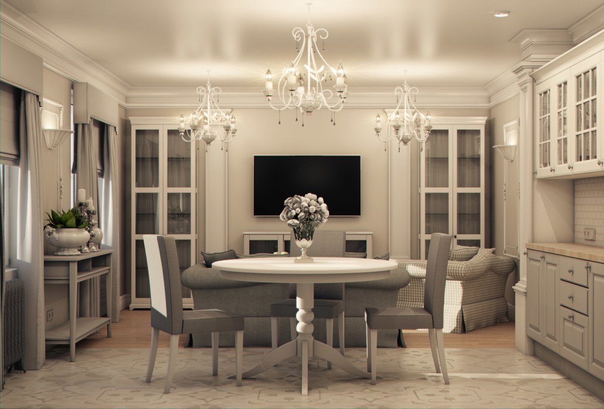 Кухня-столовая-гостиная Неоклассика