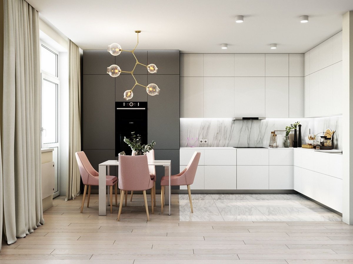 Кухня гостиная в светлых тонах