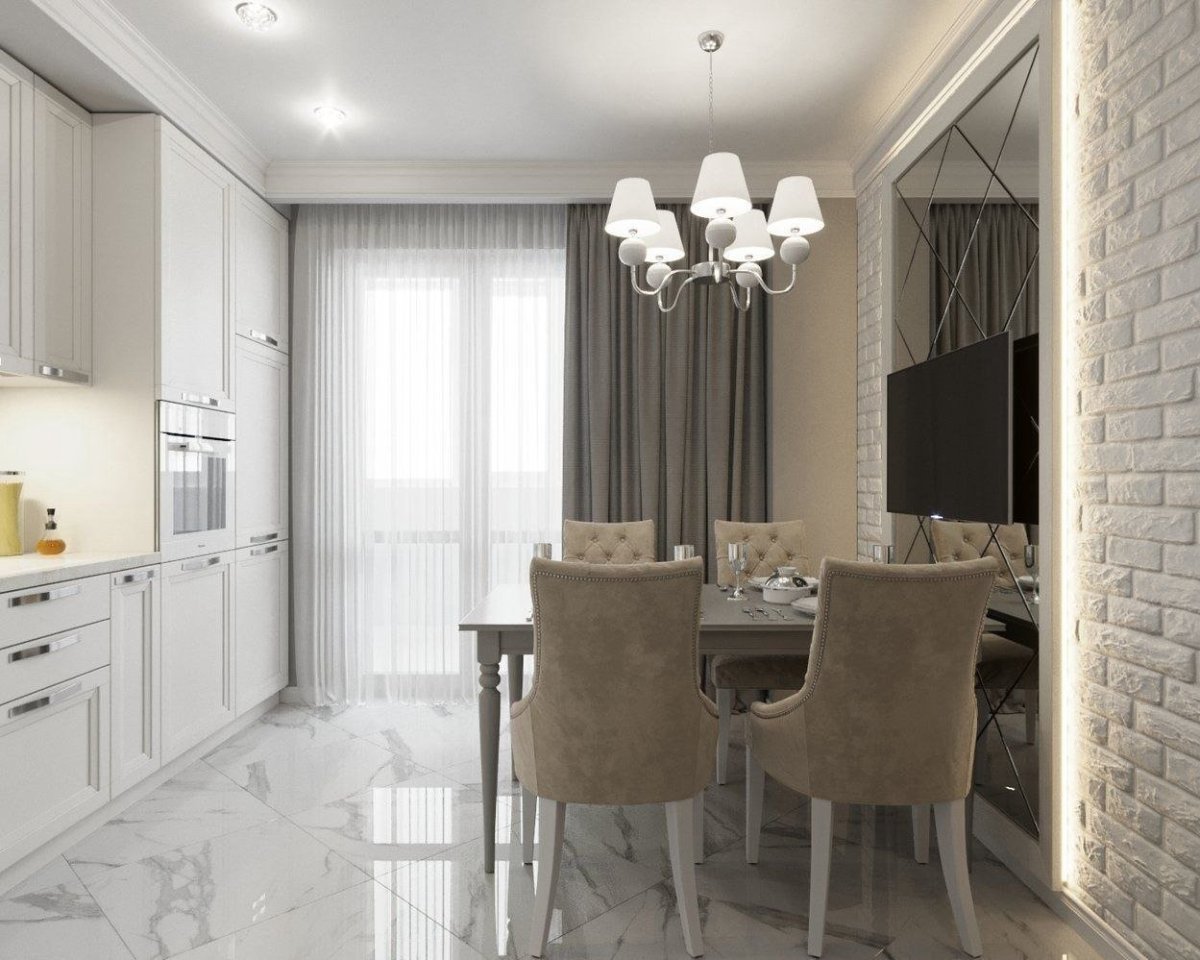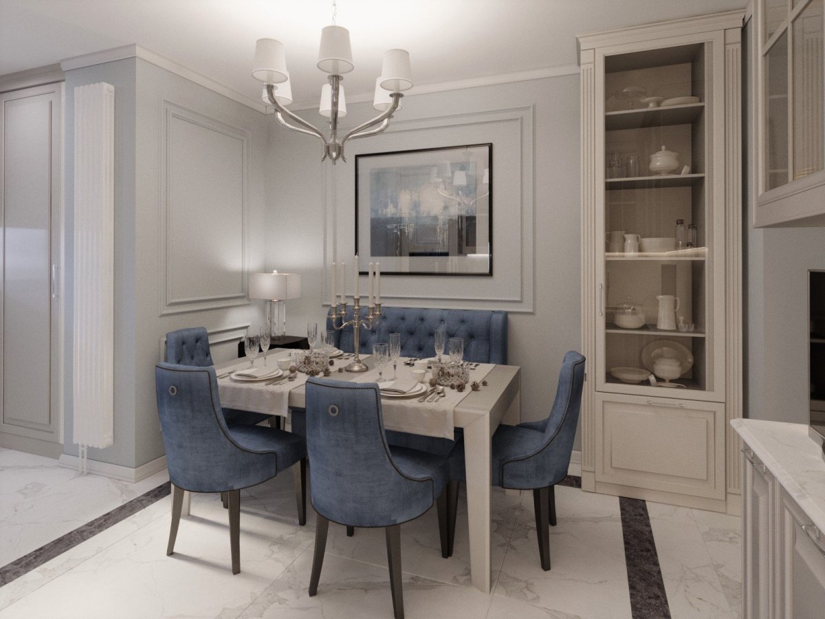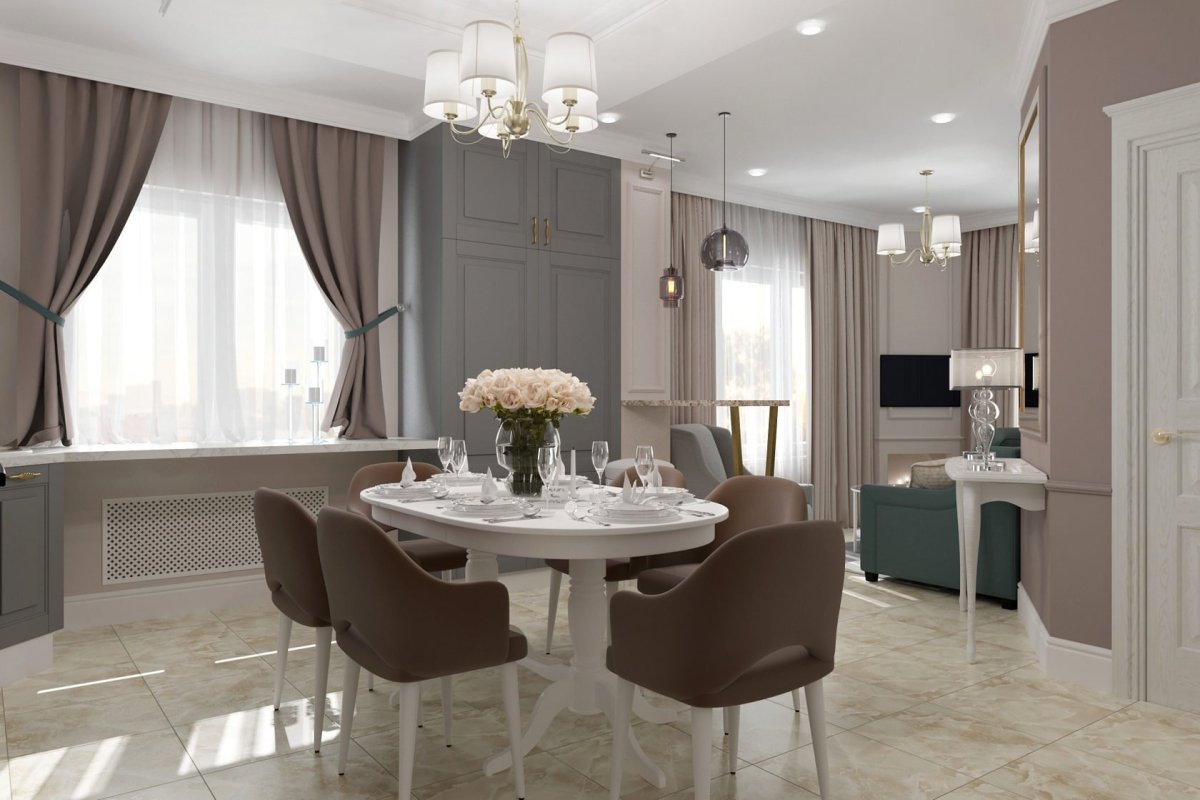 Кухня столовая гостиная в стиле Неоклассика