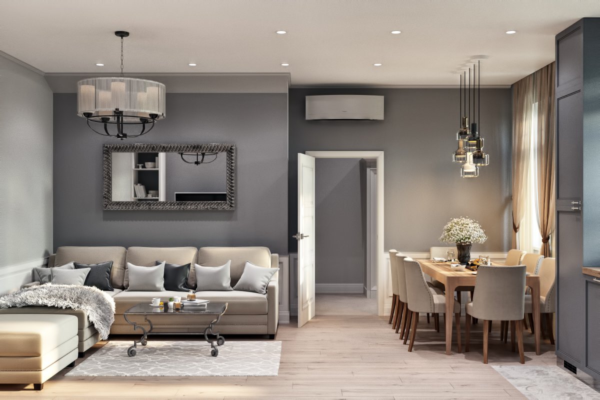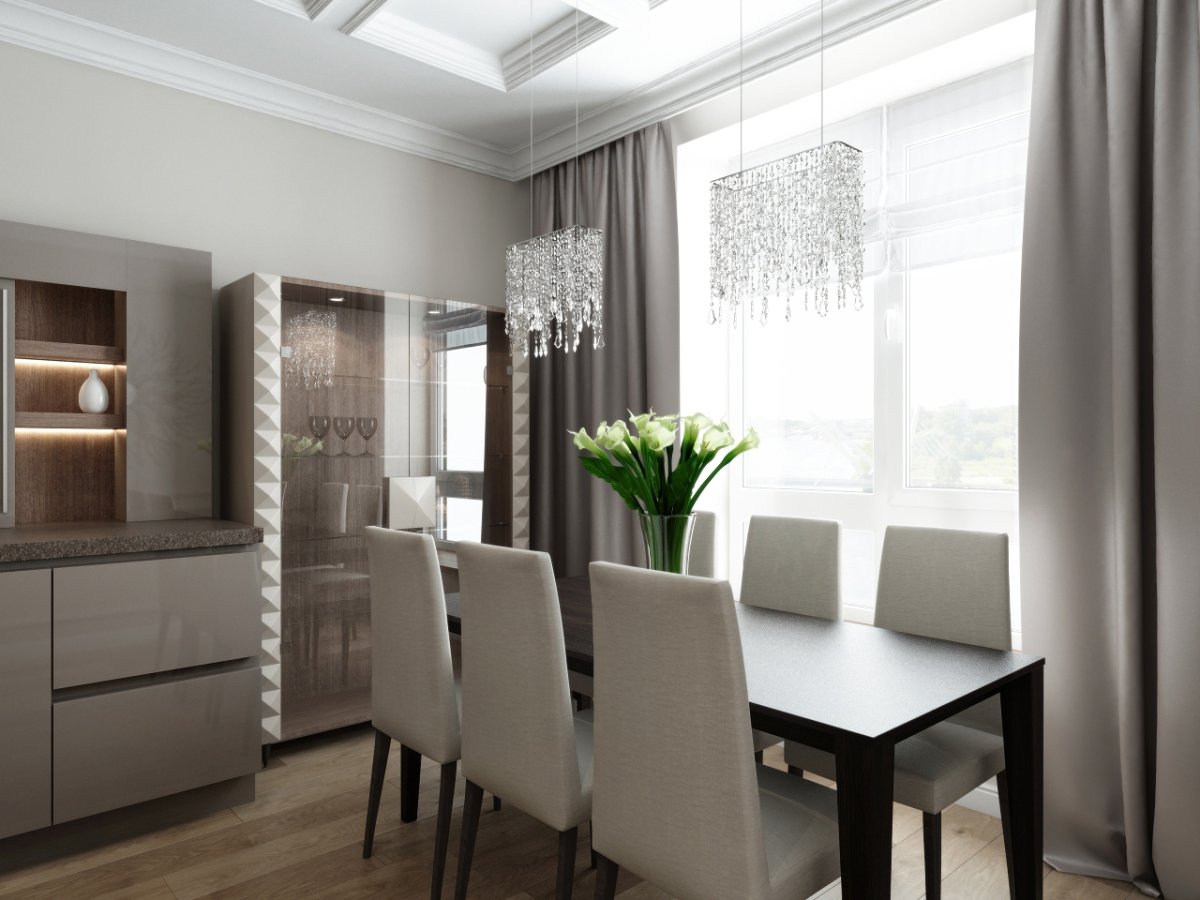 Гостиная столовая в серо бежевых тонах