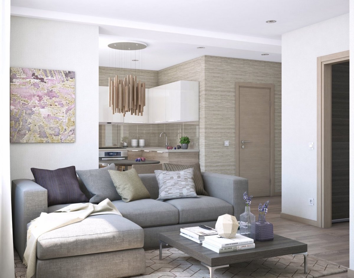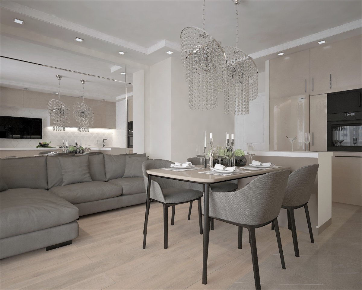 Кухня гостиная в серо бежевых тонах
