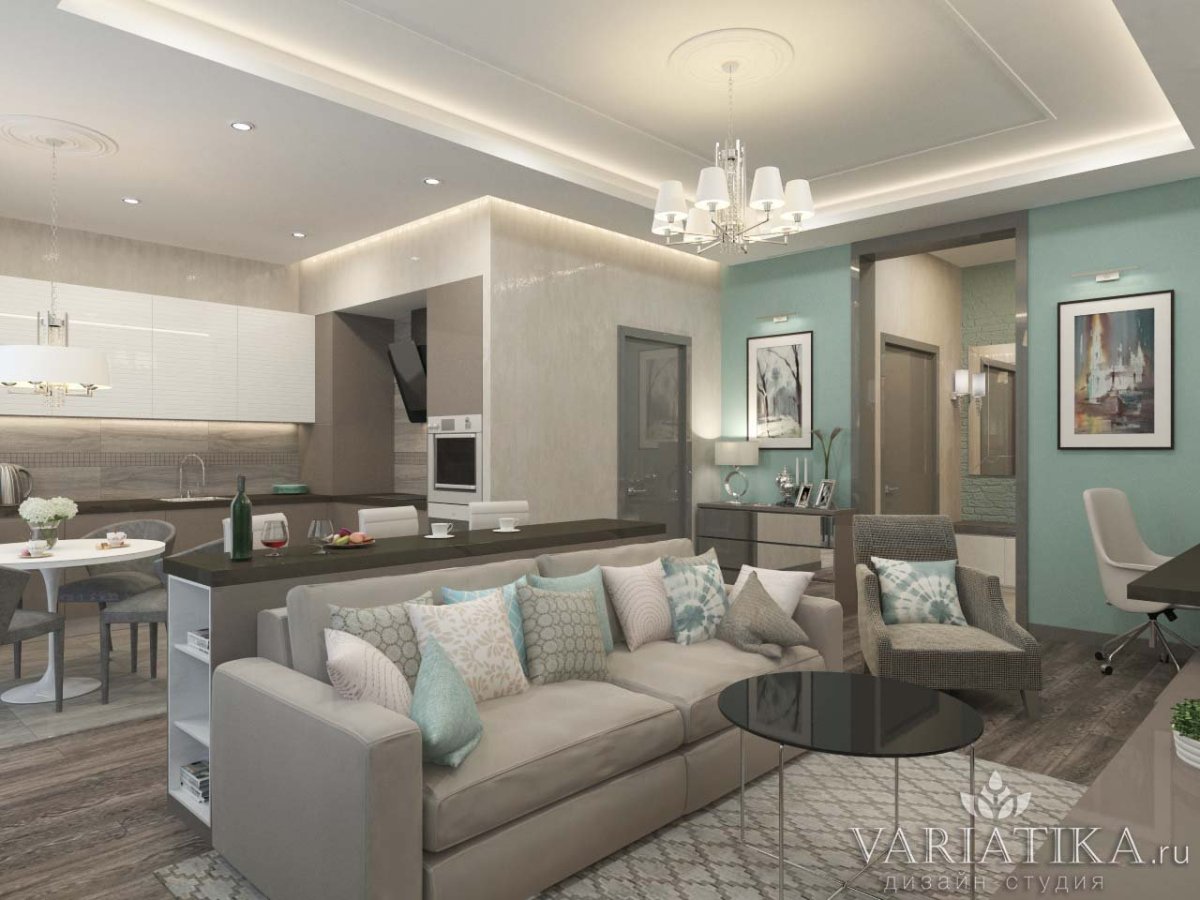 Кухня гостиная в мятных тонах