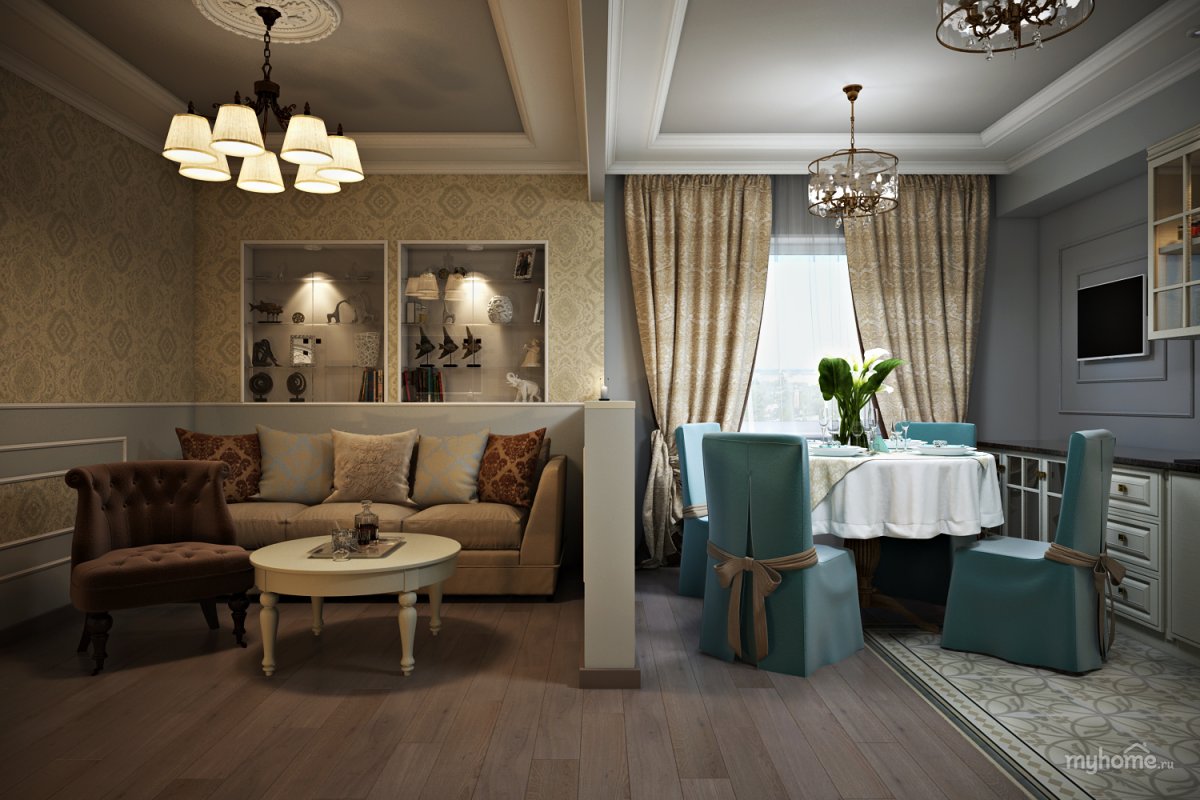 Гостиная Неоклассика 17 кв м кухня