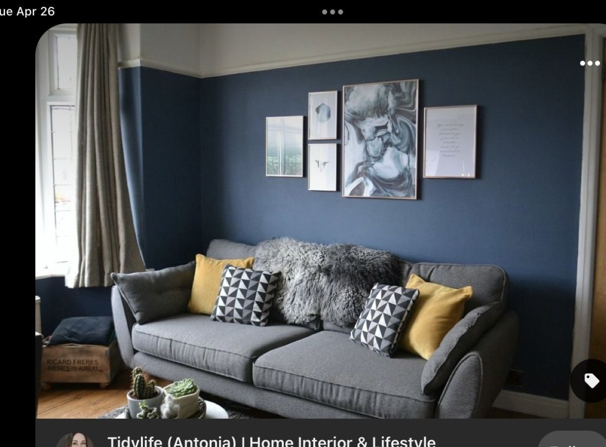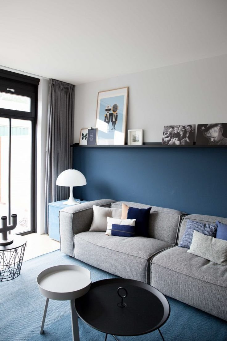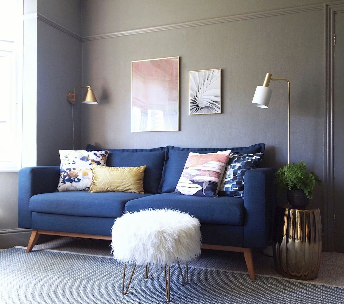 Серые стены синий диван