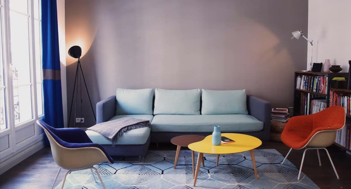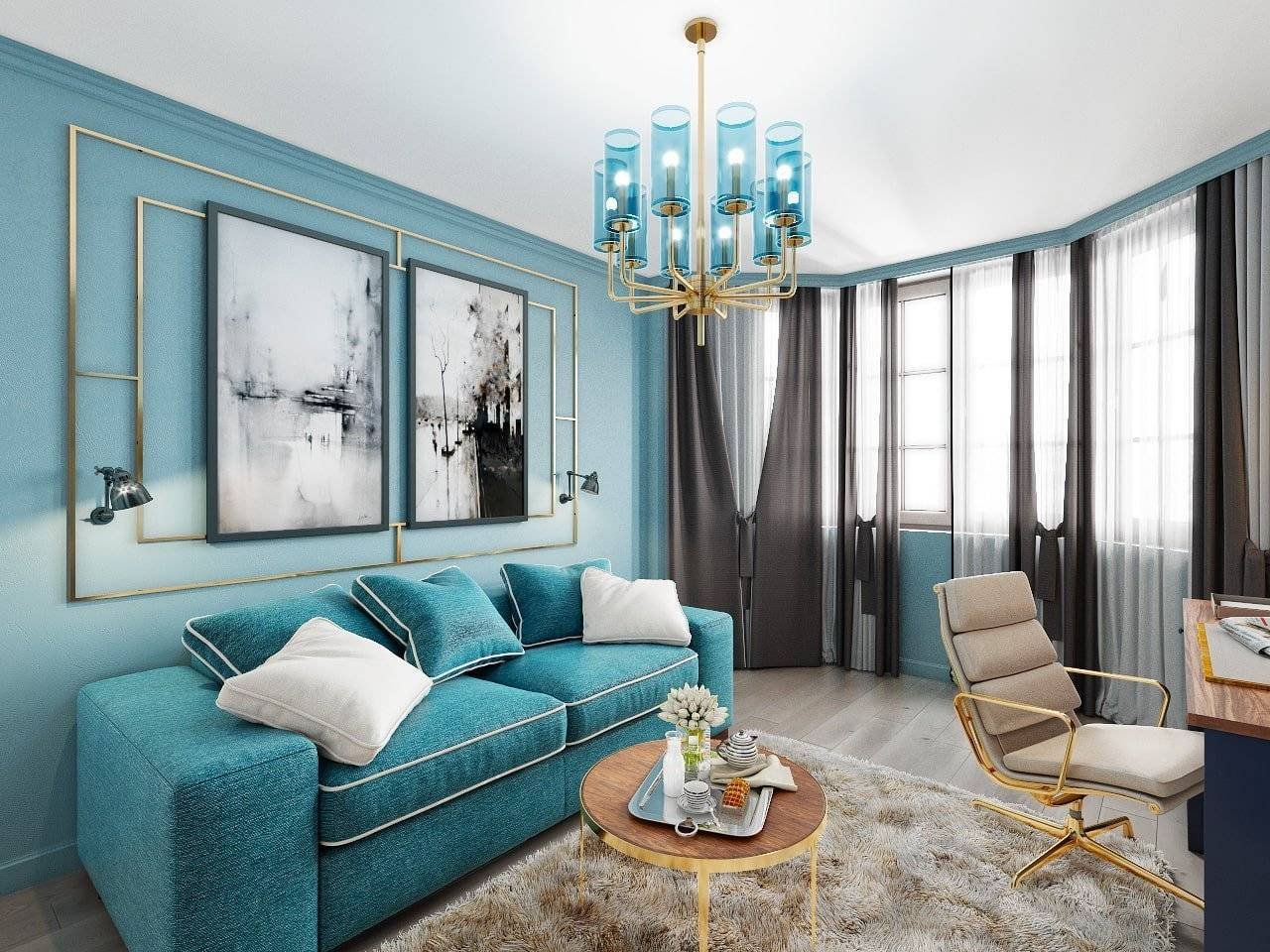 Голубой диван в интерьере
