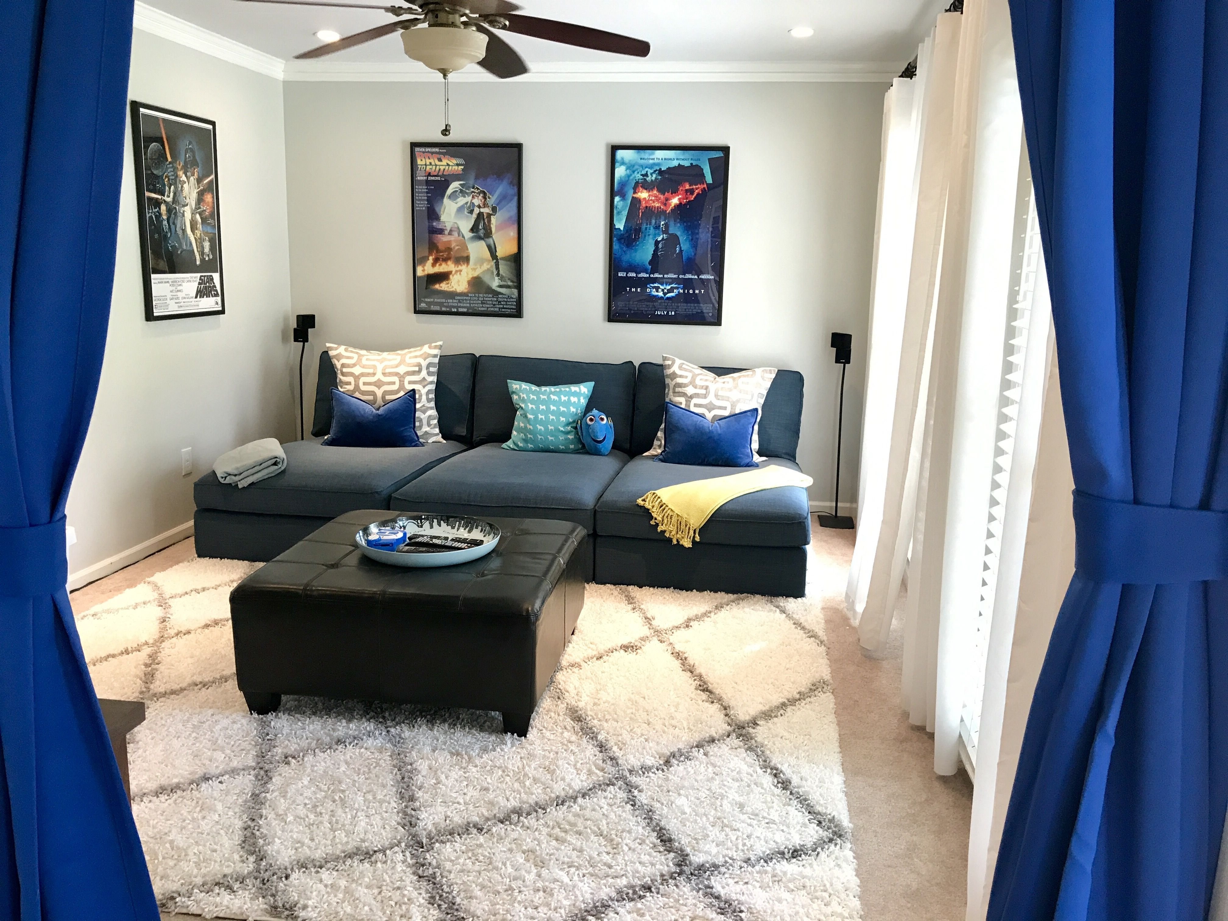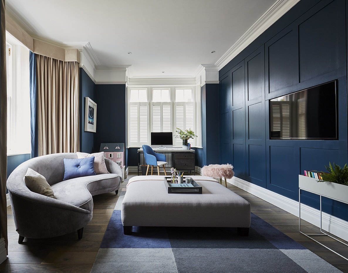 Темно синие шторы в интерьере