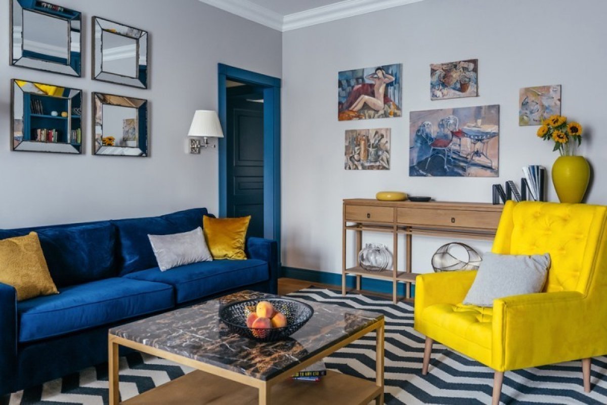 Сине желтый интерьер