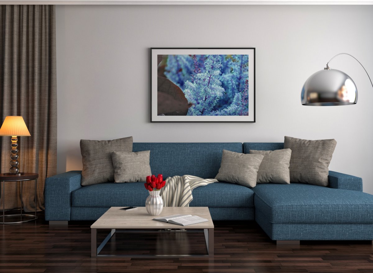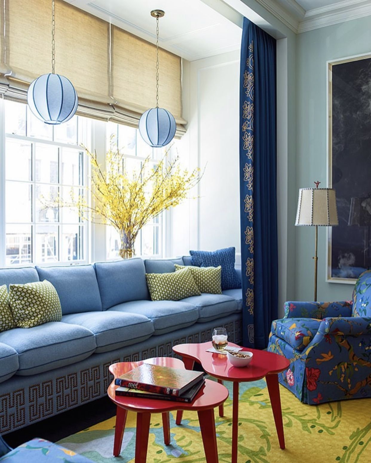 Гостиная с синим диваном