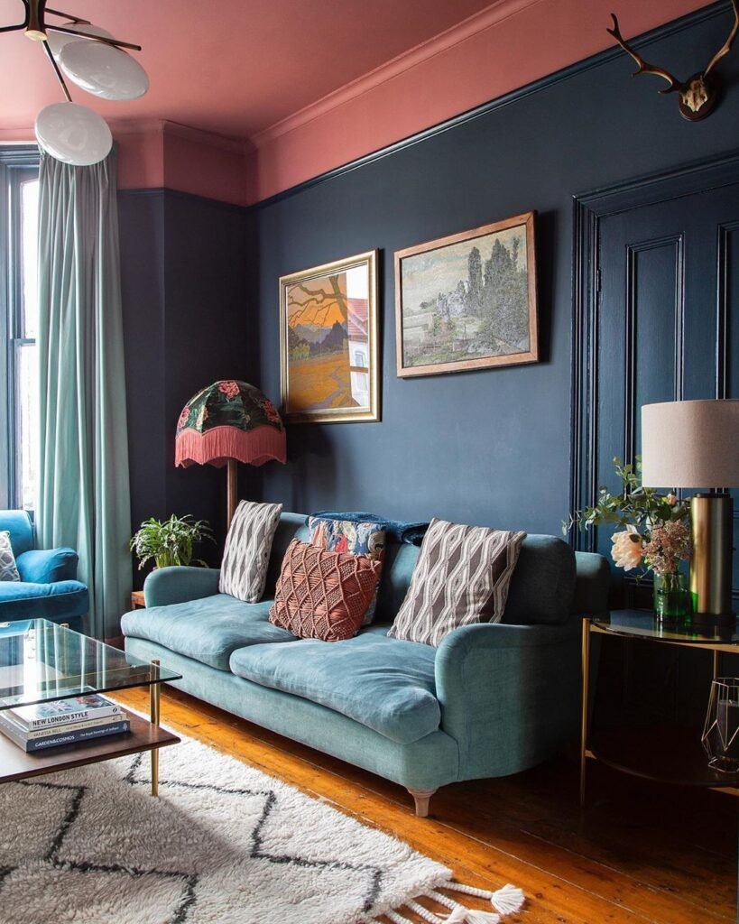 Синие стены в гостиной