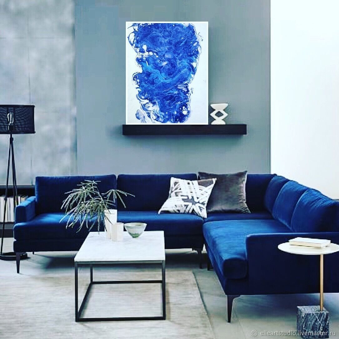 Синий диван в интерьере