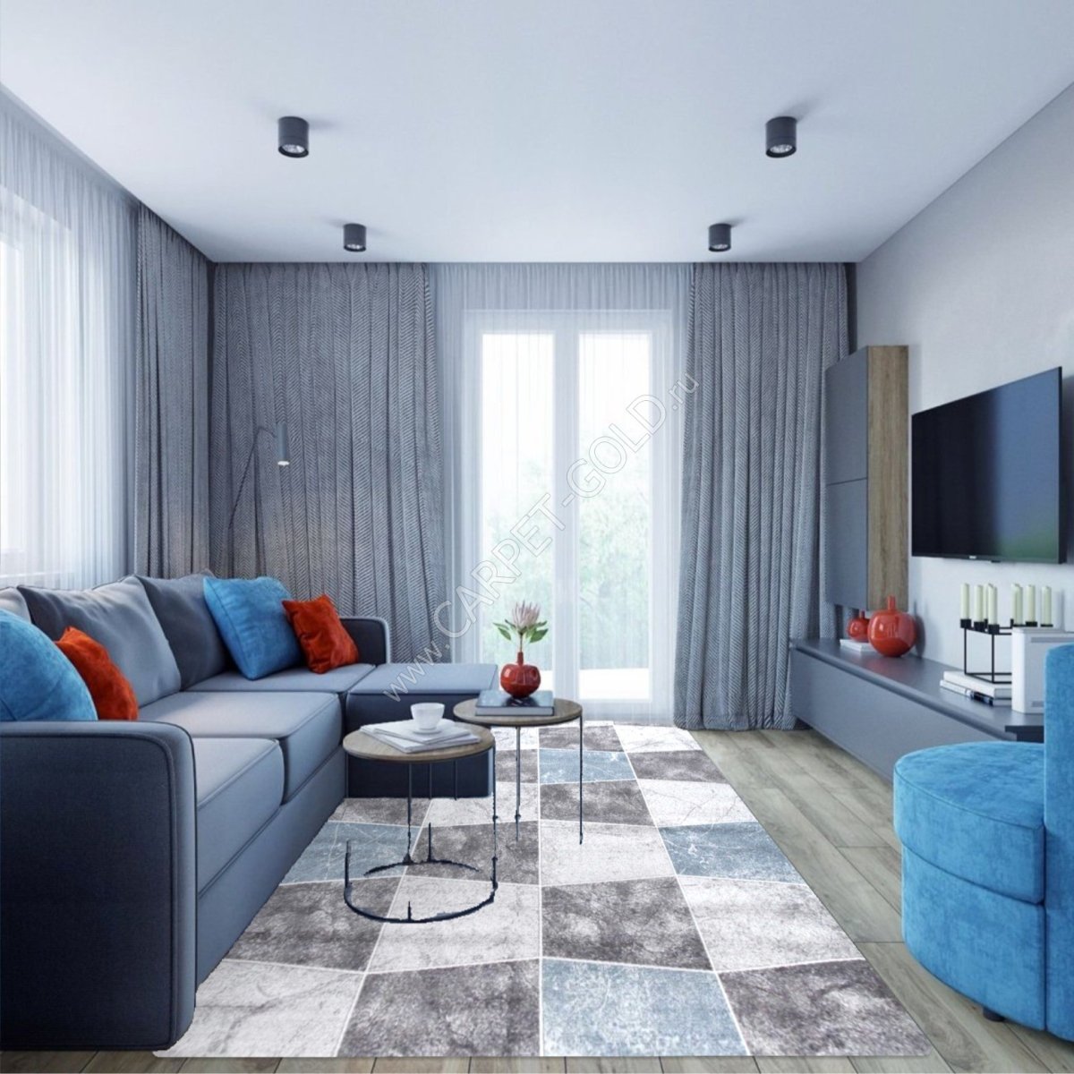 Гостиная в серо синих тонах