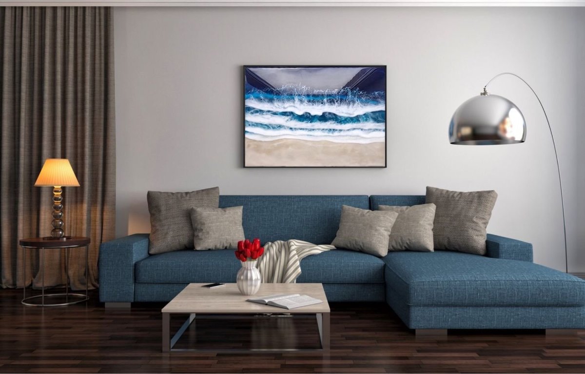 Синий диван в гостиной