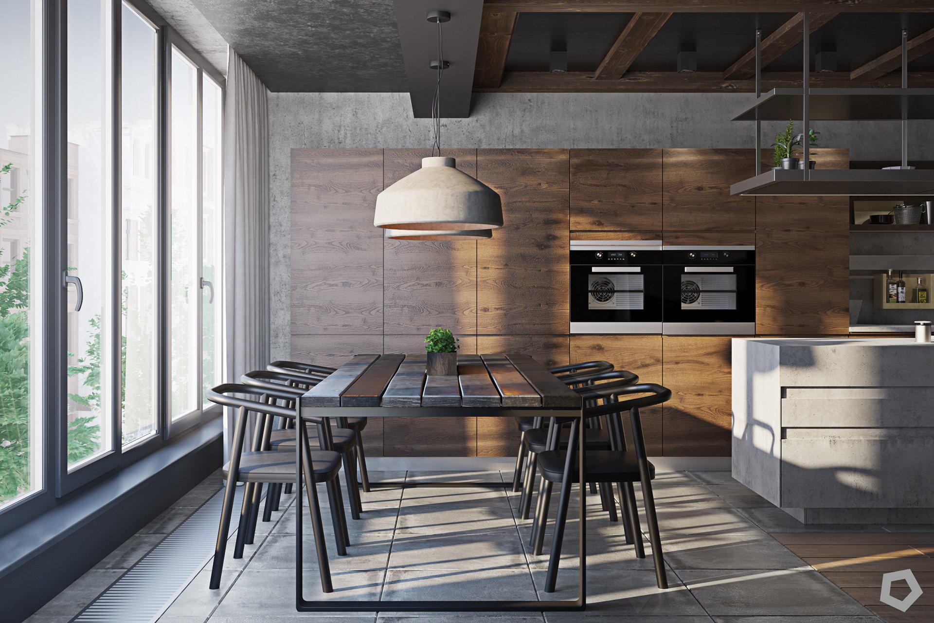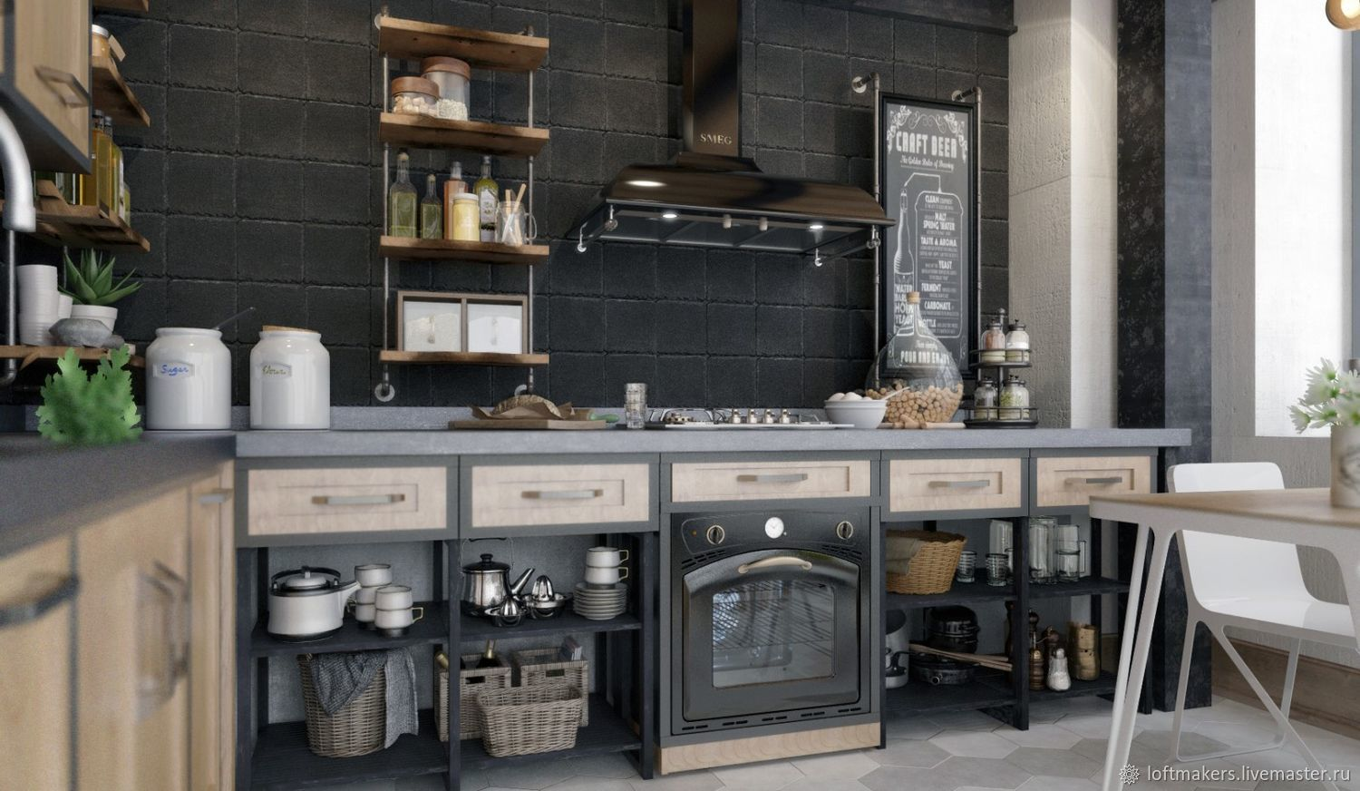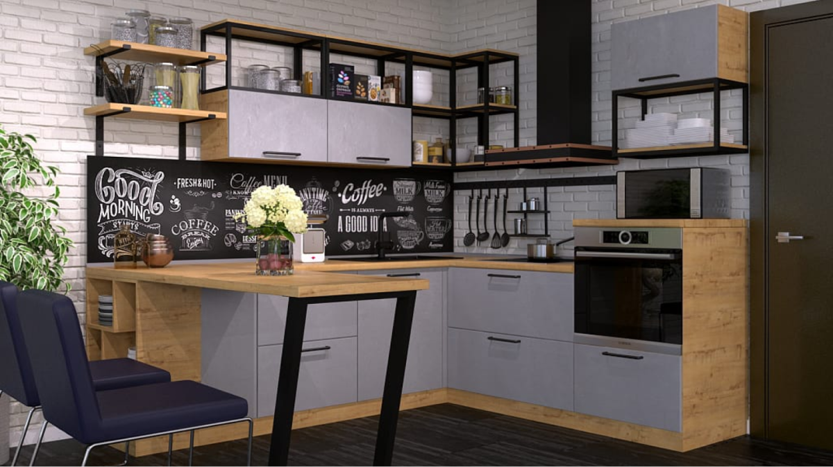 Кухня лофт МЕТАЛЛПРОФИЛЬ дерево