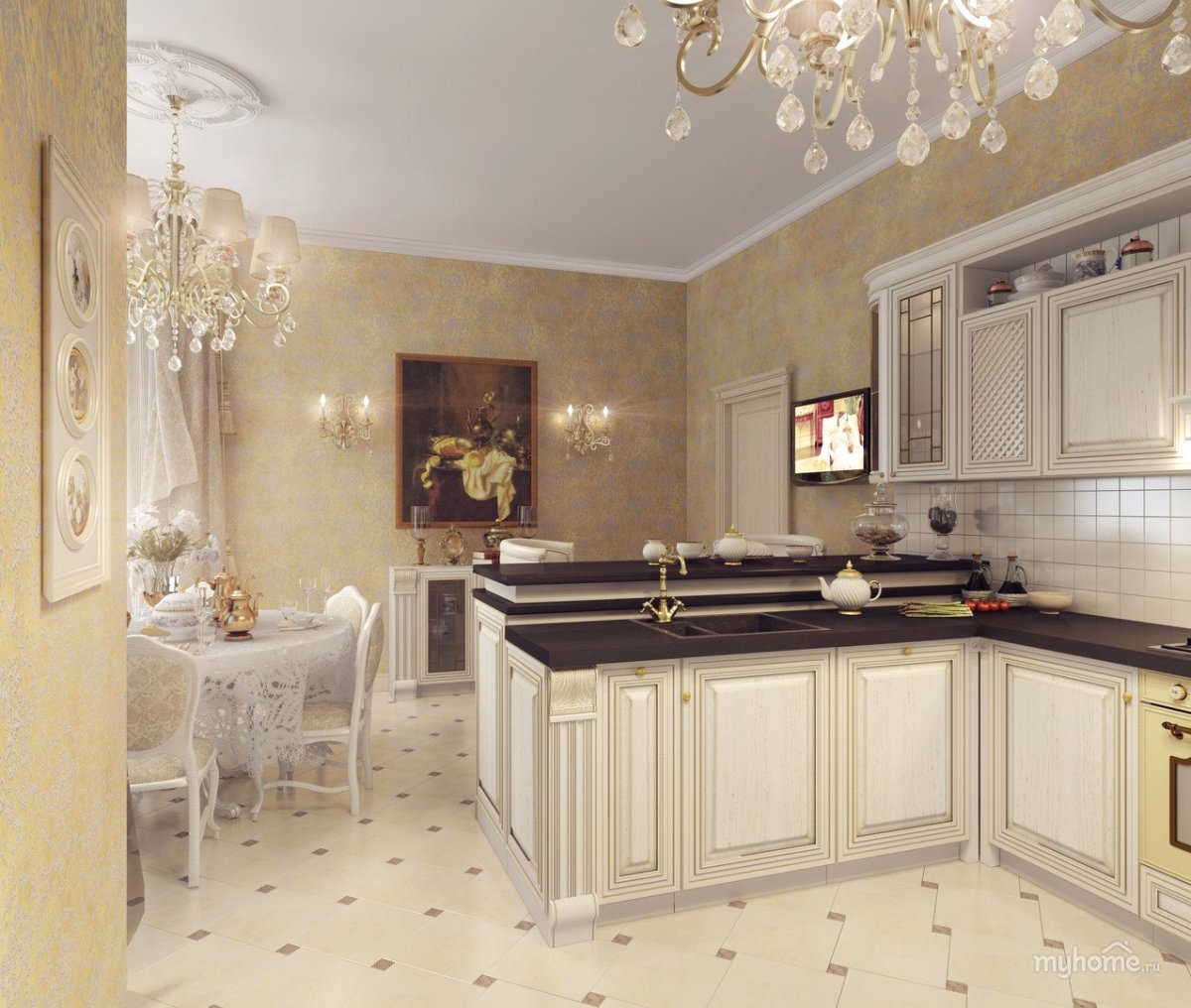 Дизайн кухни в стиле Неоклассика в светлых тонах