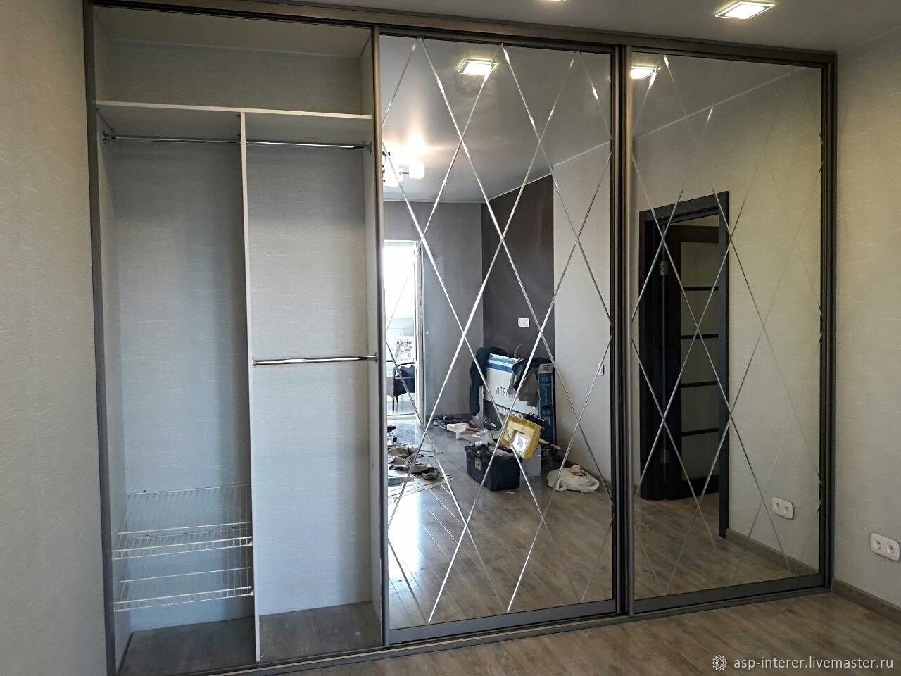 Зеркальные двери купе для гардеробной
