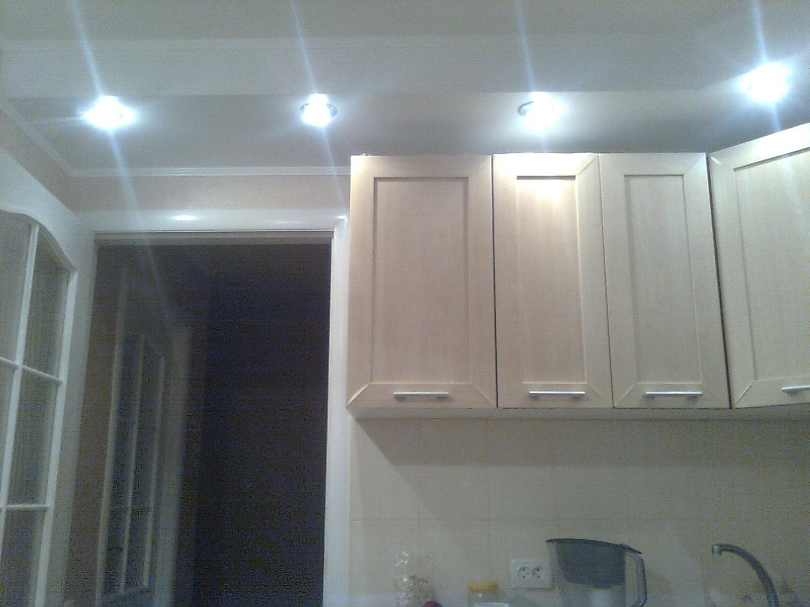 Потолок на кухне с точечными светильниками
