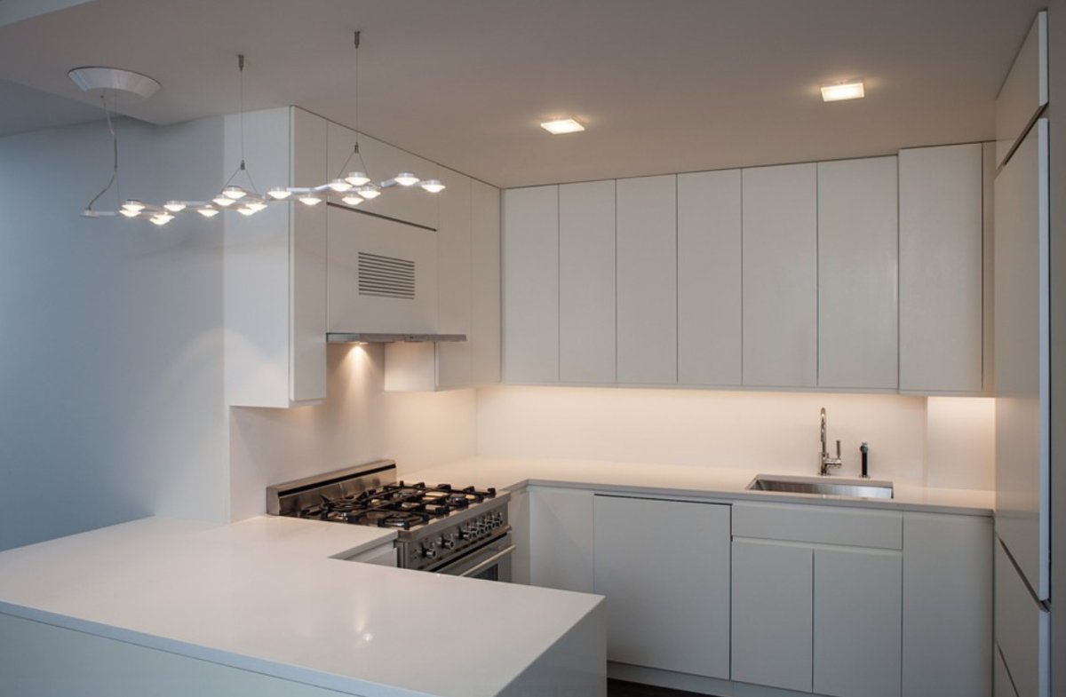 Расположение точечных светильников на кухне
