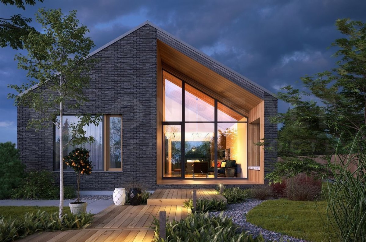 Небольшой домик с панорамными окнами