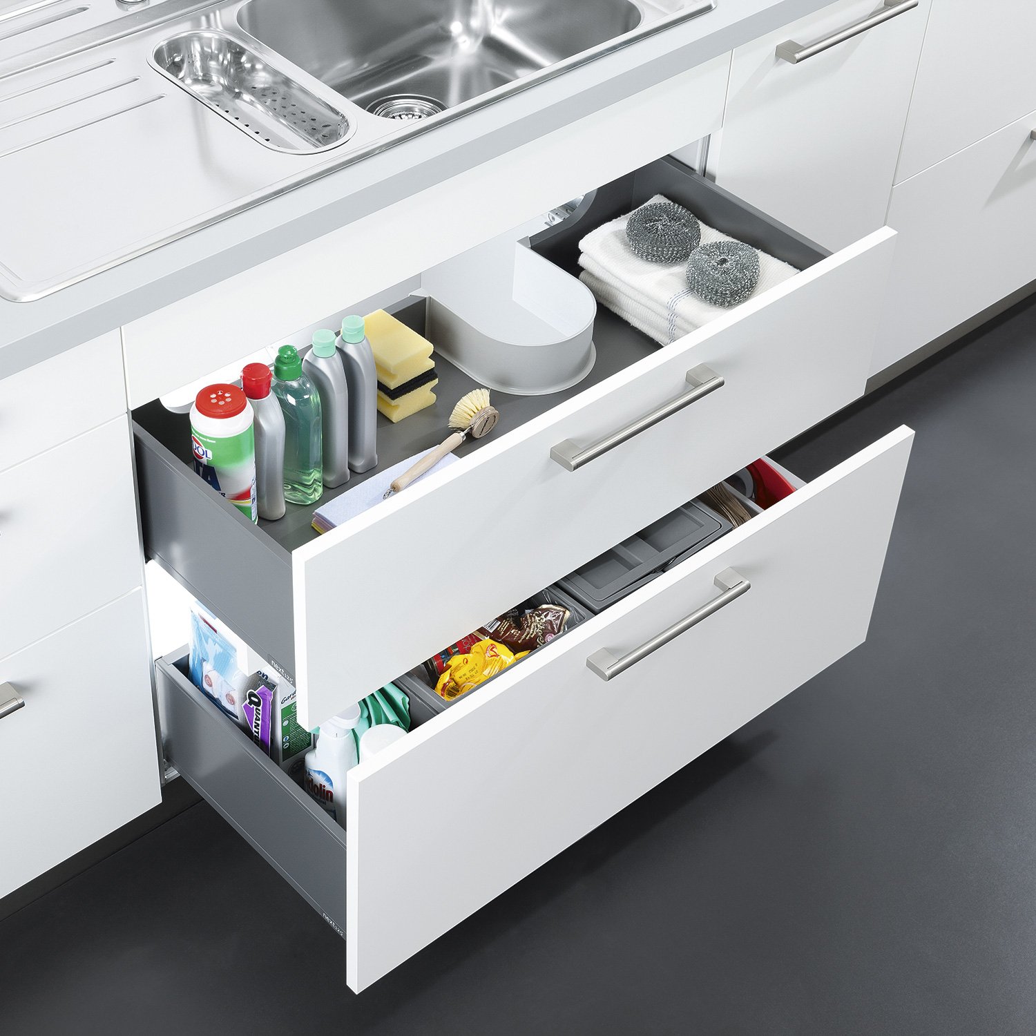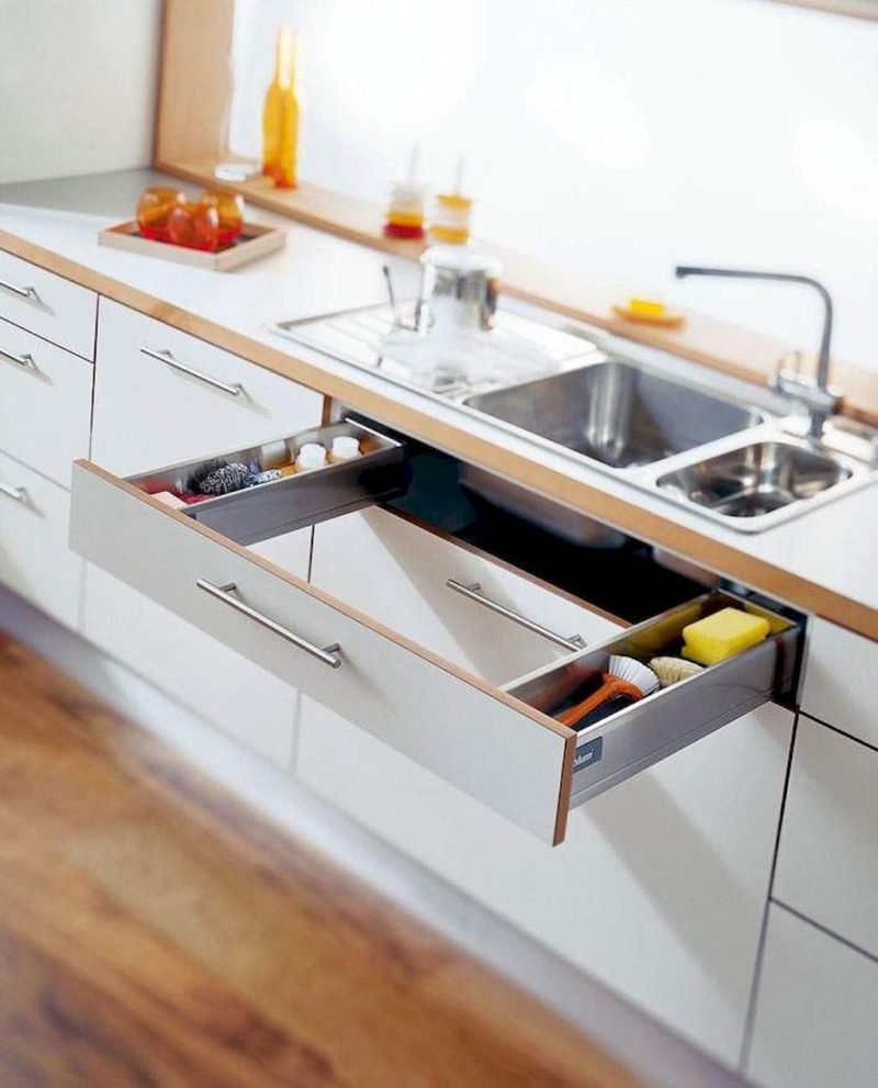 Выдвижные ящики под мойкой на кухне