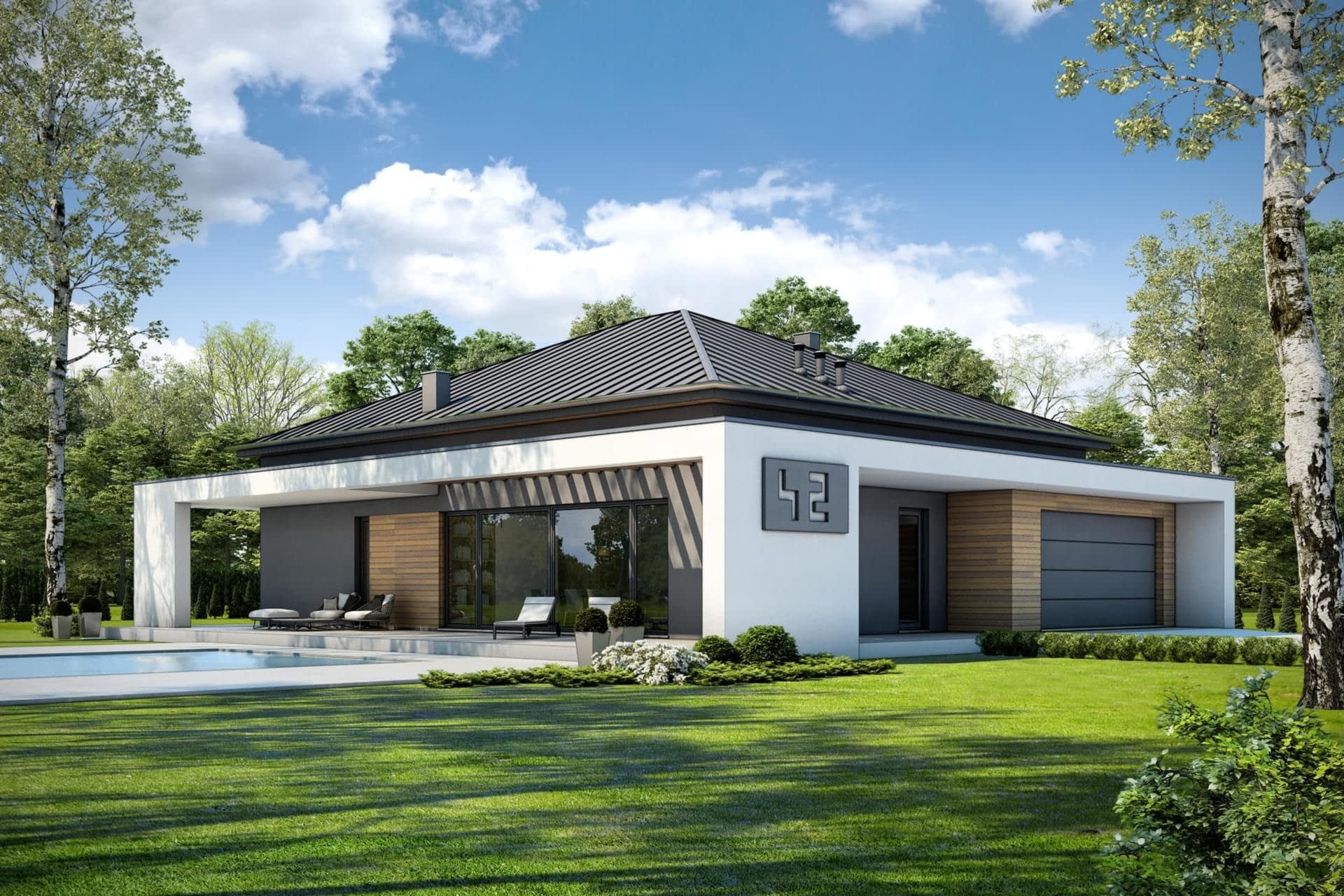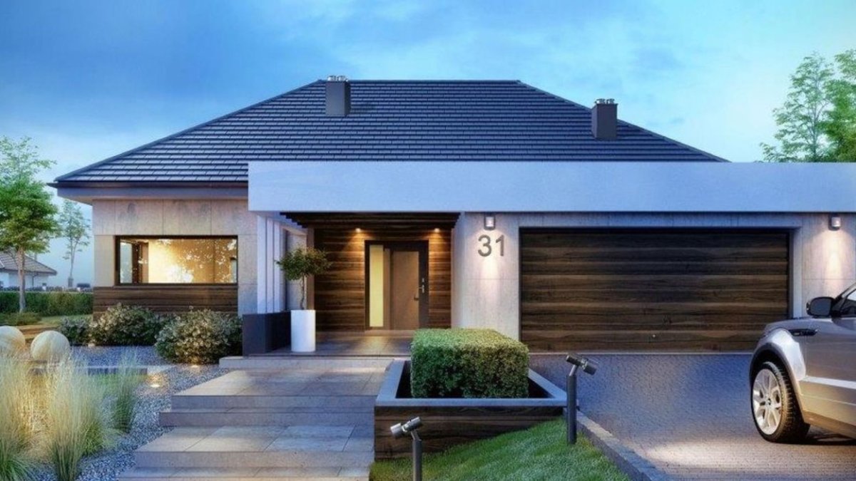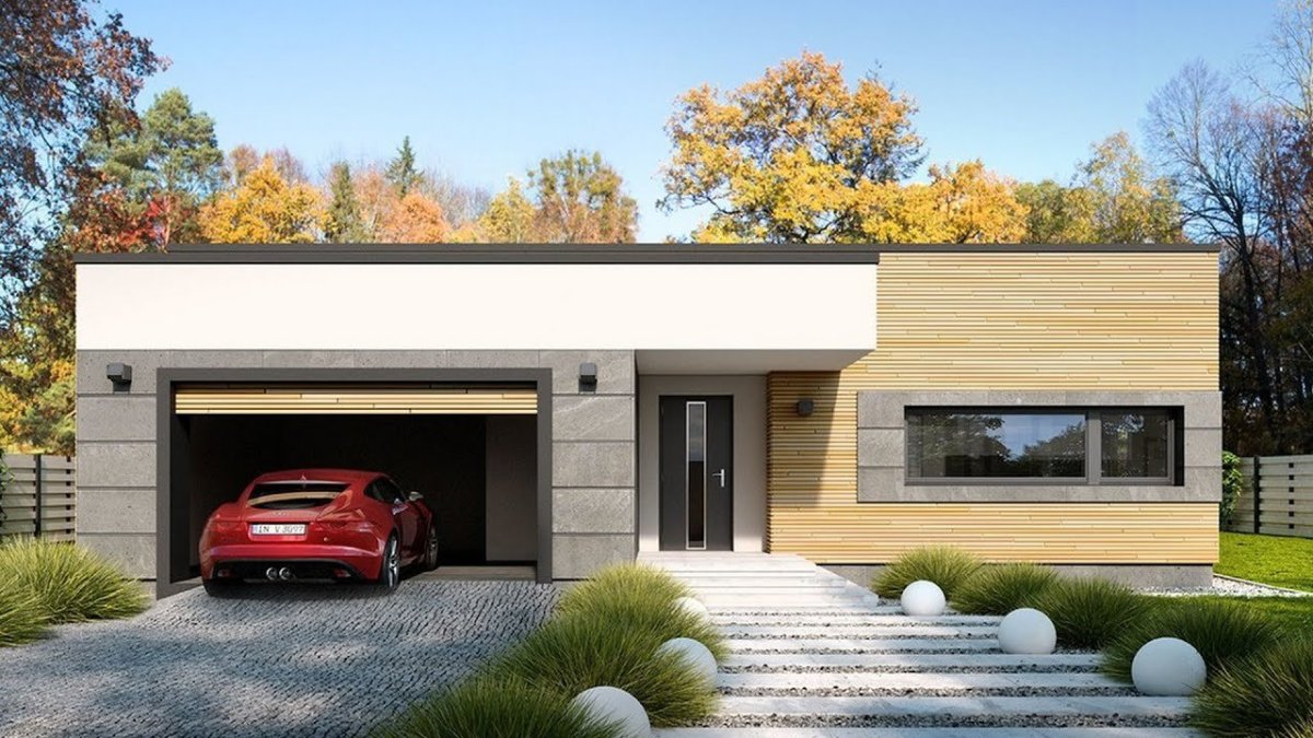 Современный одноэтажный дом с гаражом