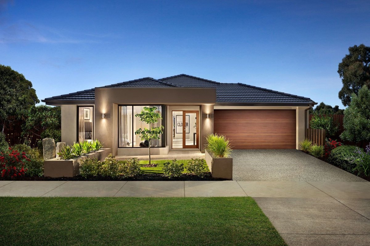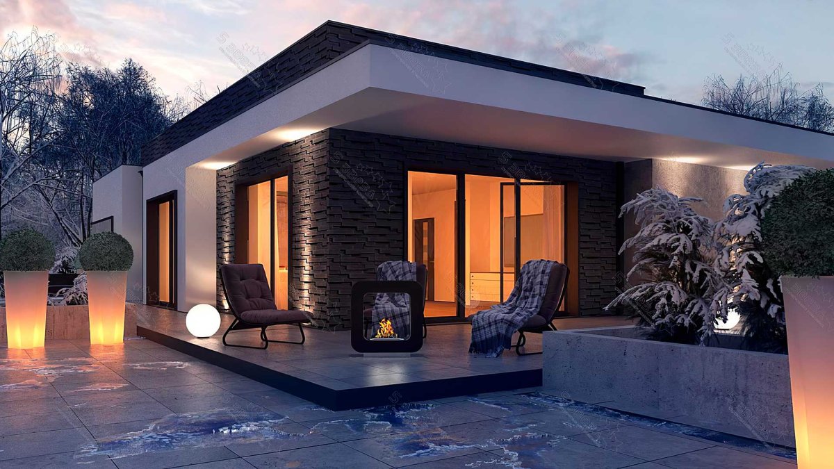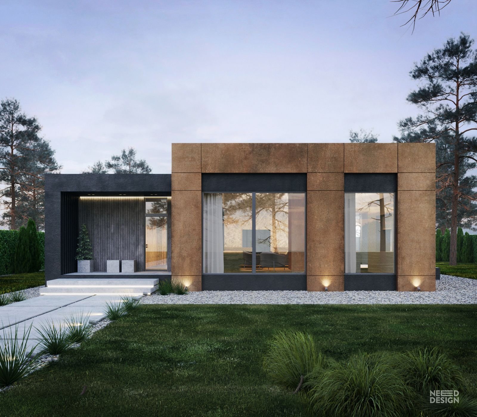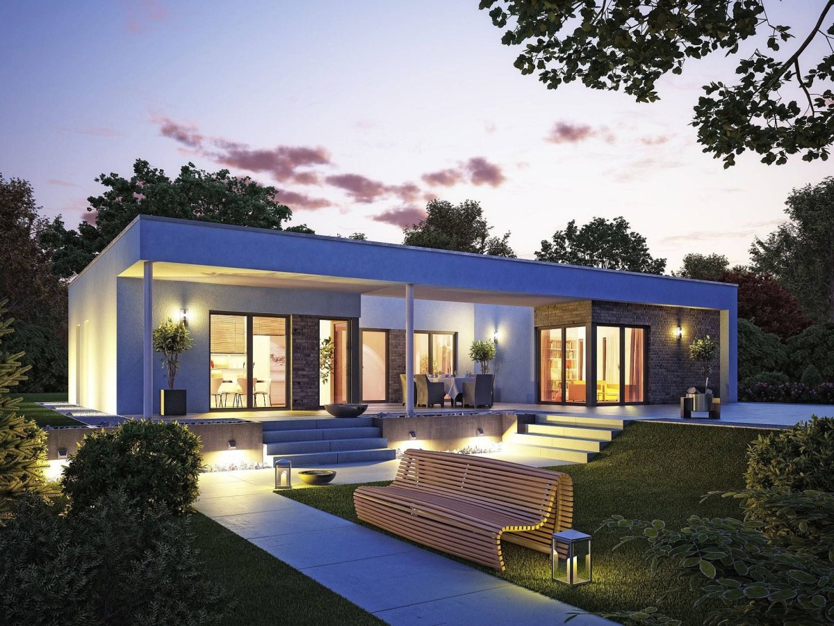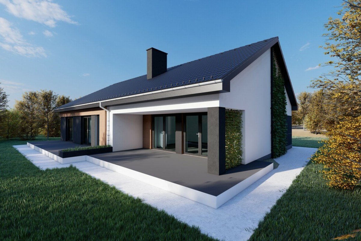 Одноэтажный дом с ландшафтом