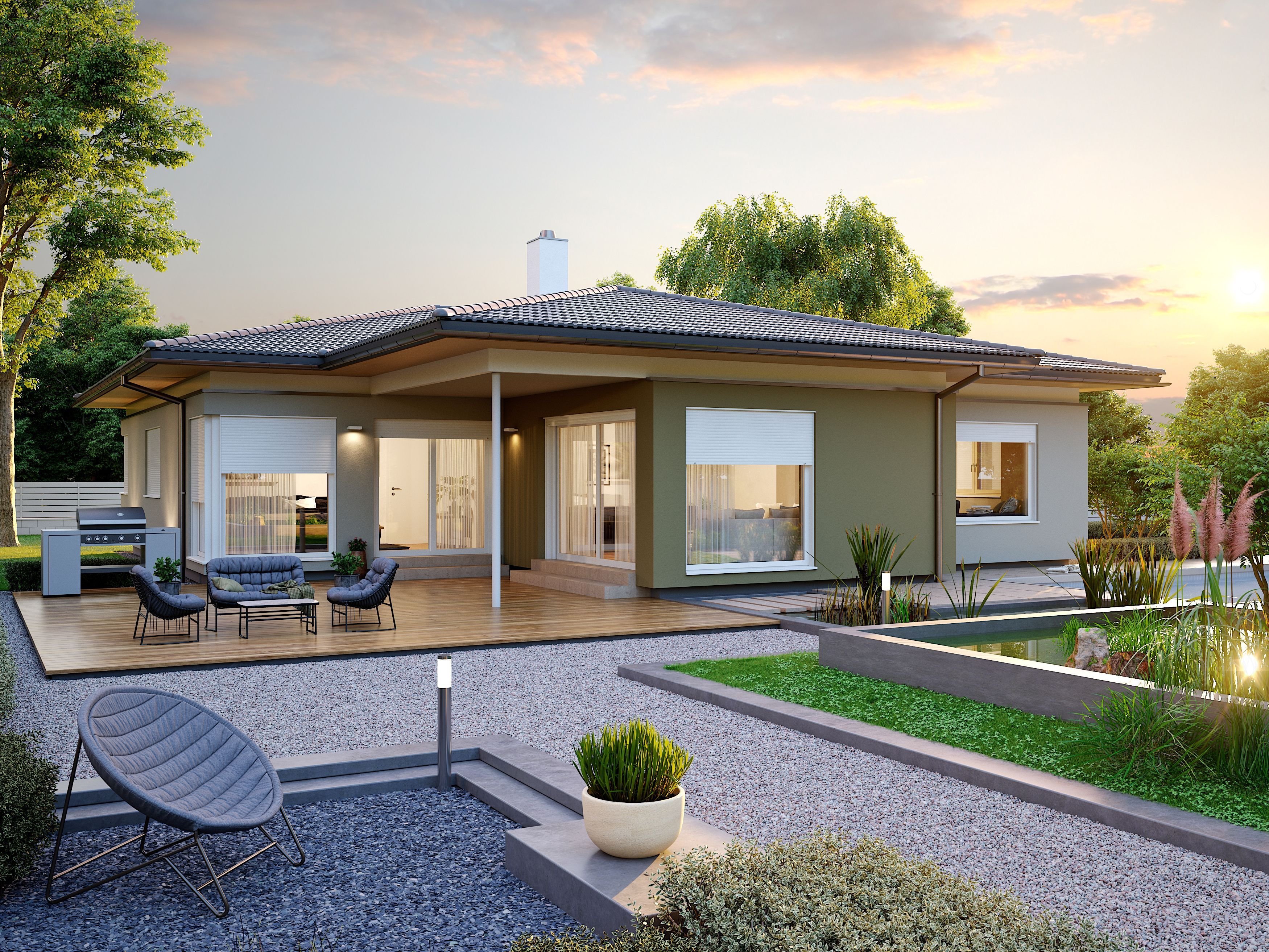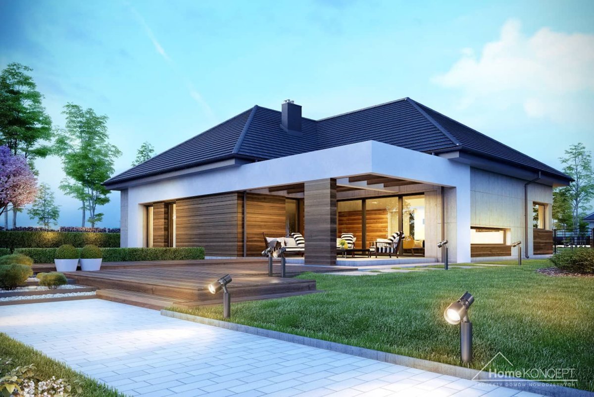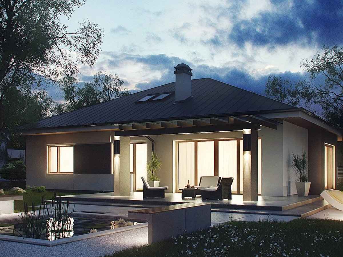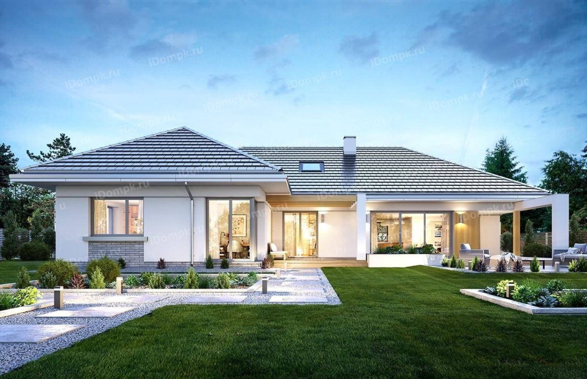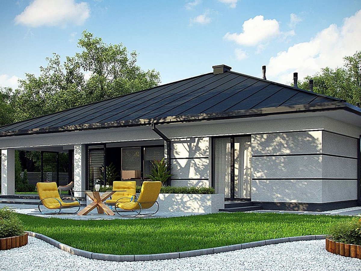 Одноэтажный дом в стиле бунгало