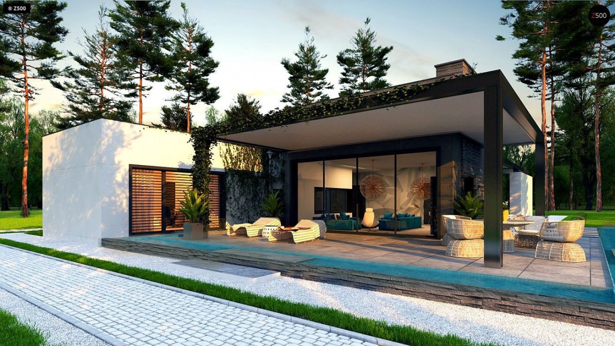 Z500 проекты одноэтажных домов с террасой