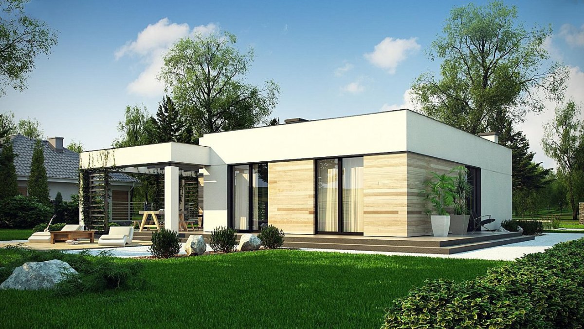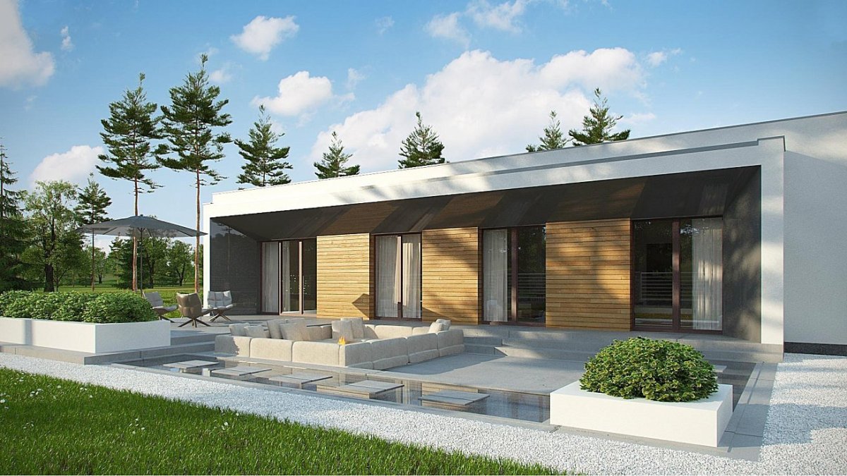 Одноэтажный дом z500 с плоской крышей