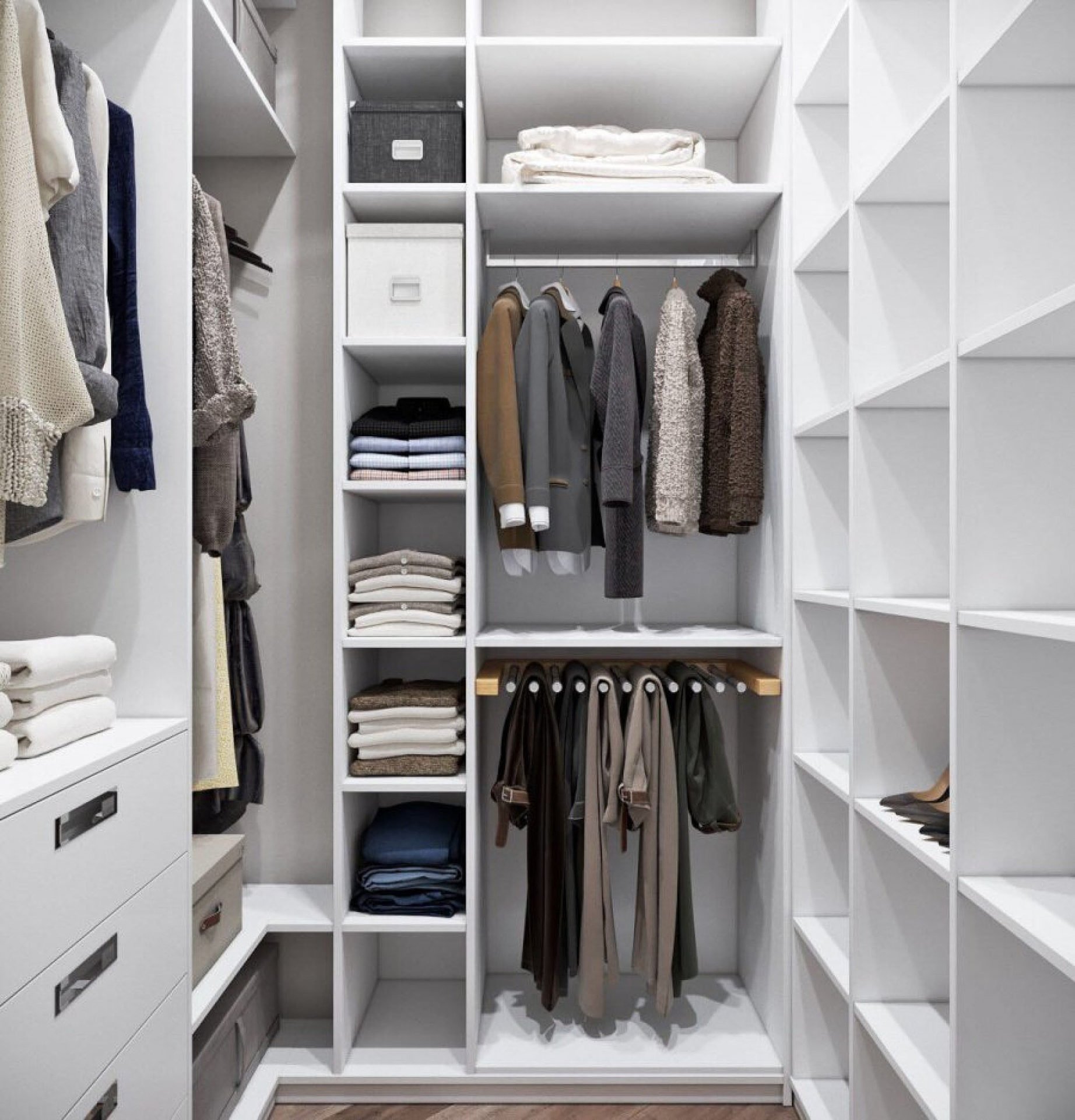 П-образная гардеробная комната