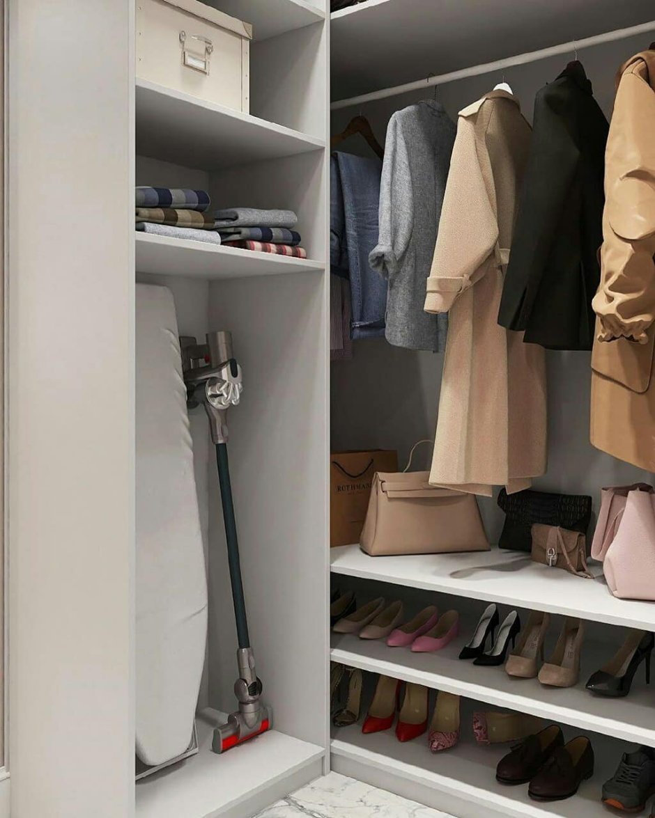 Гардеробная для верхней одежды и обуви в кладовке идеи