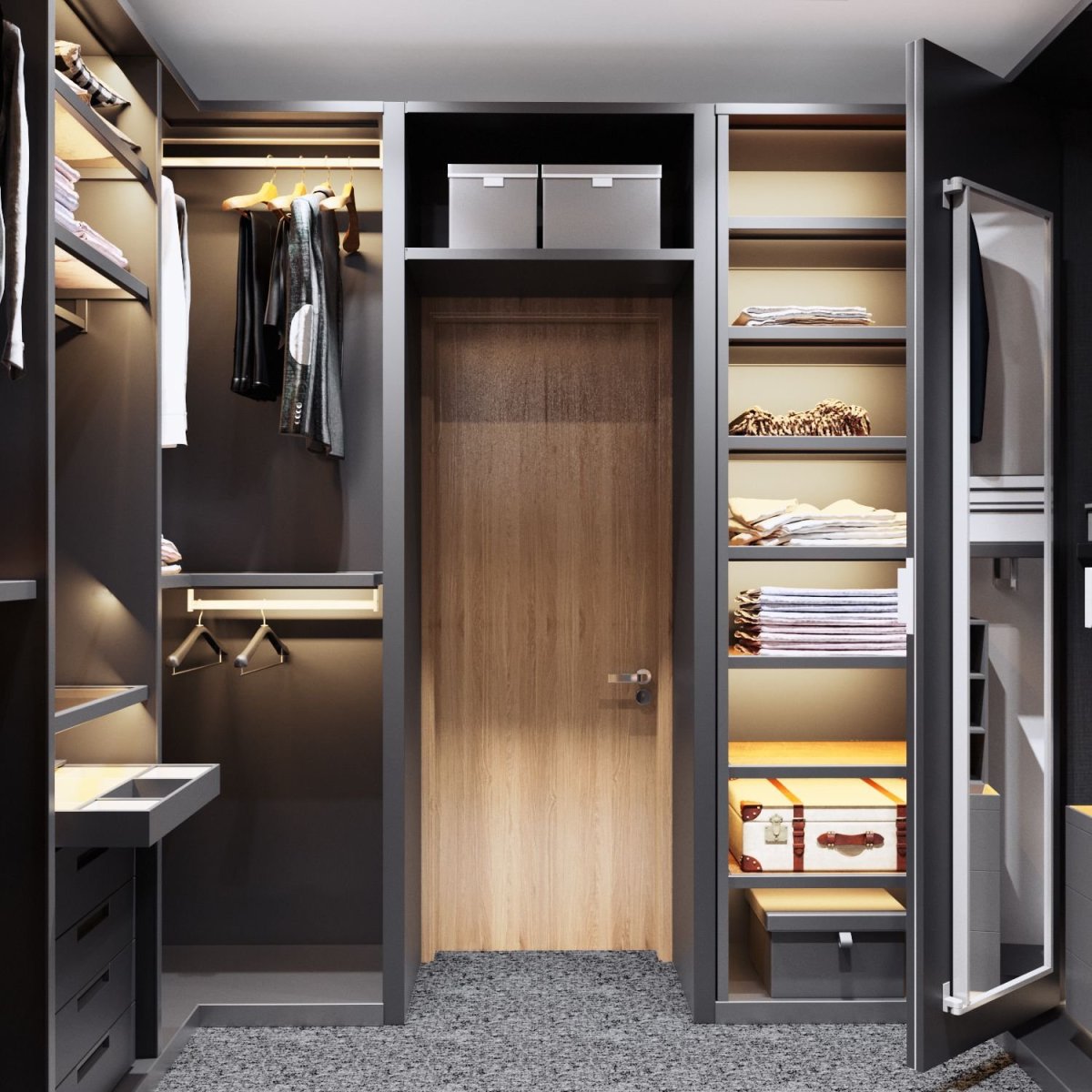 Гардеробная в прямоугольной комнате