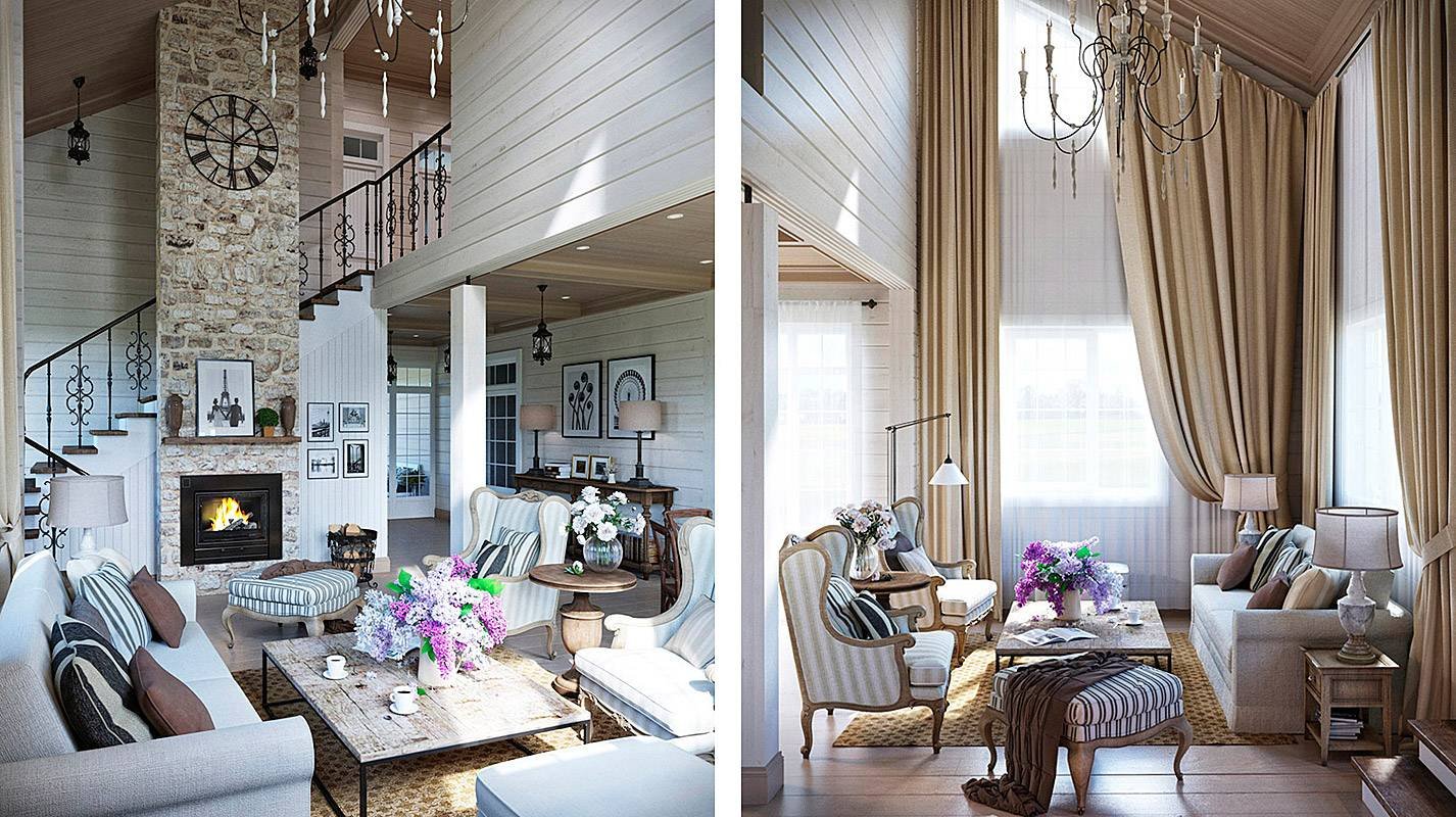 Оцилиндровочный дом в стиле Кантри и Прованс