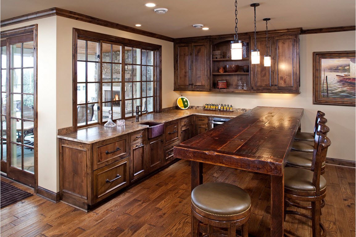 Деревянная кухня в интерьере