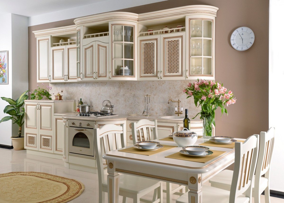 Кухня слоновая кость с золотом