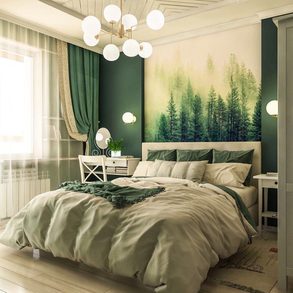Спальня в зеленых тонах 2022