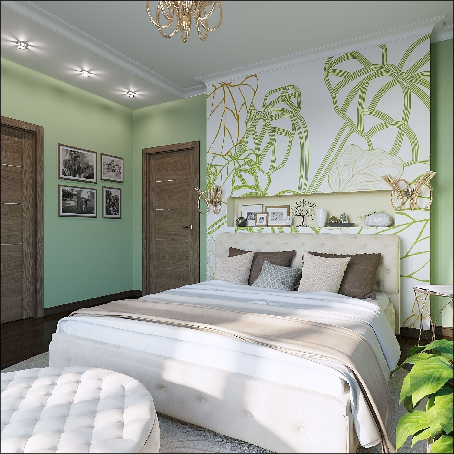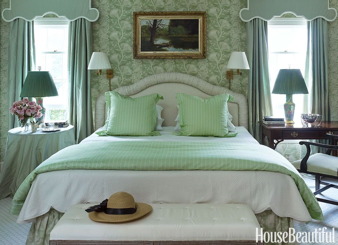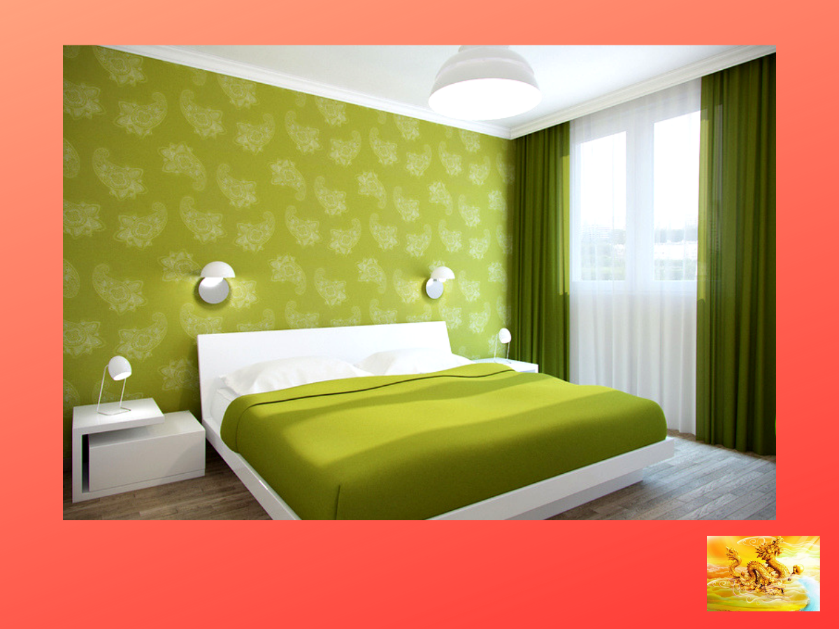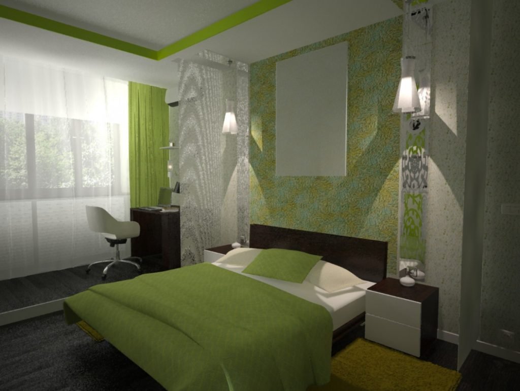 Спальня с зелеными обоими
