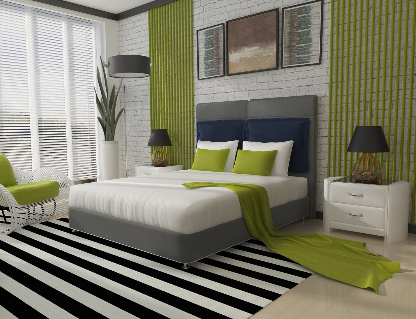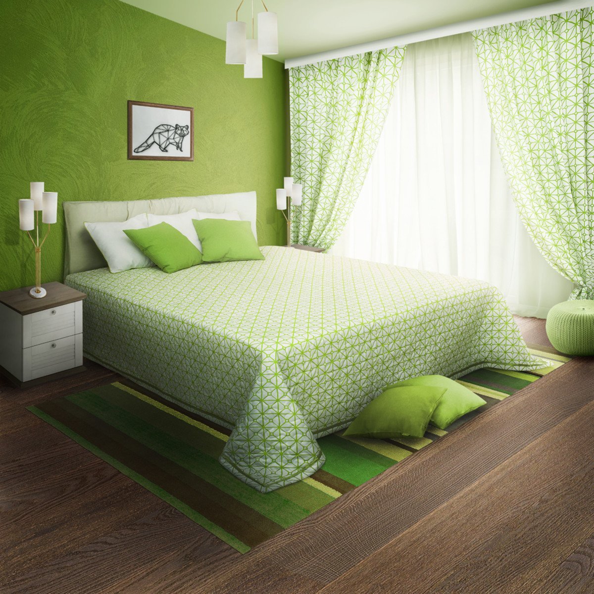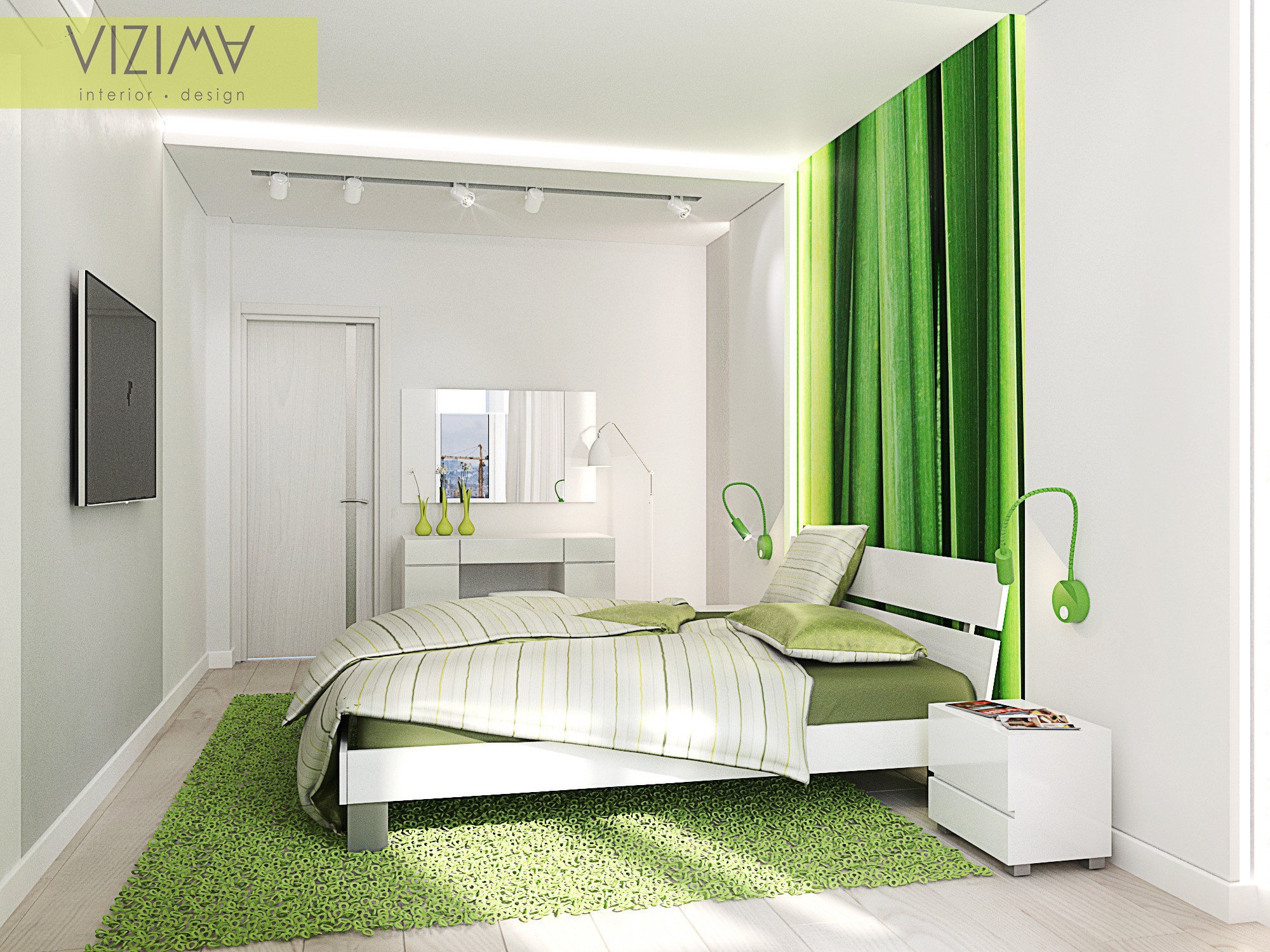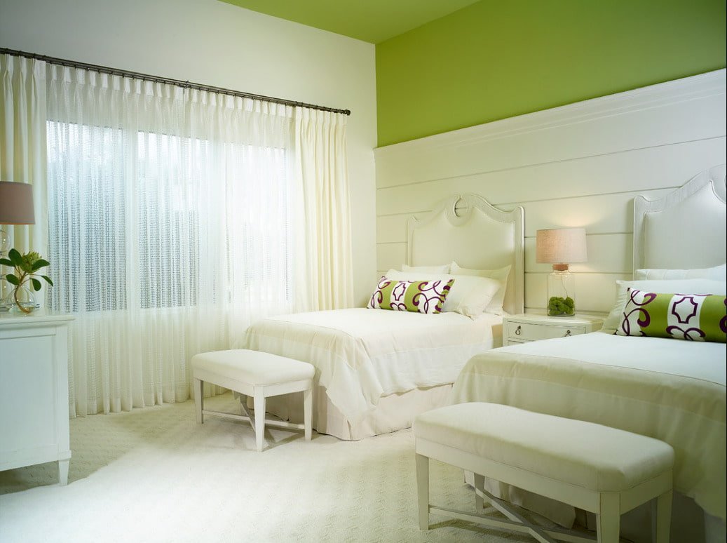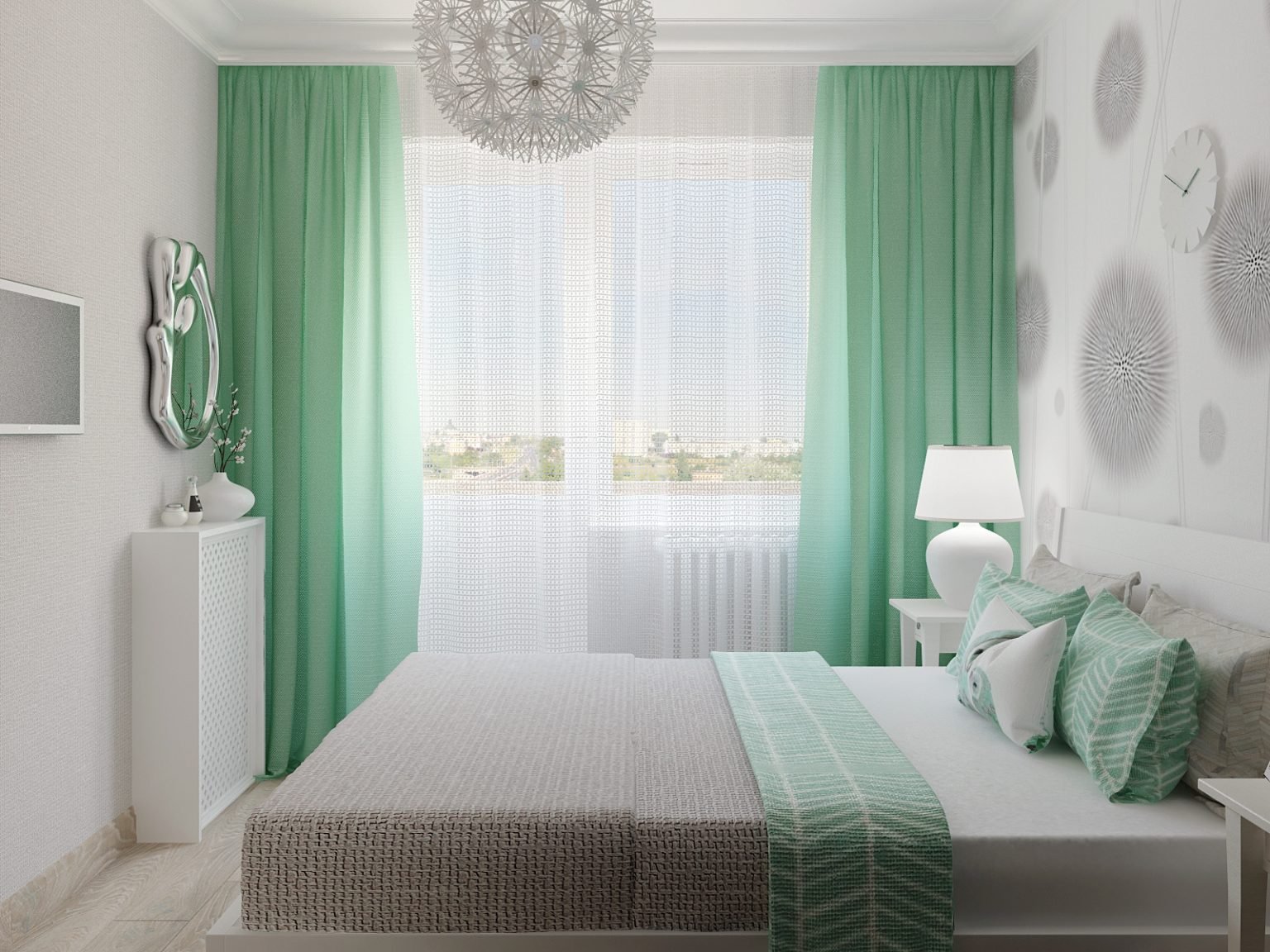 Бело зеленая спальня