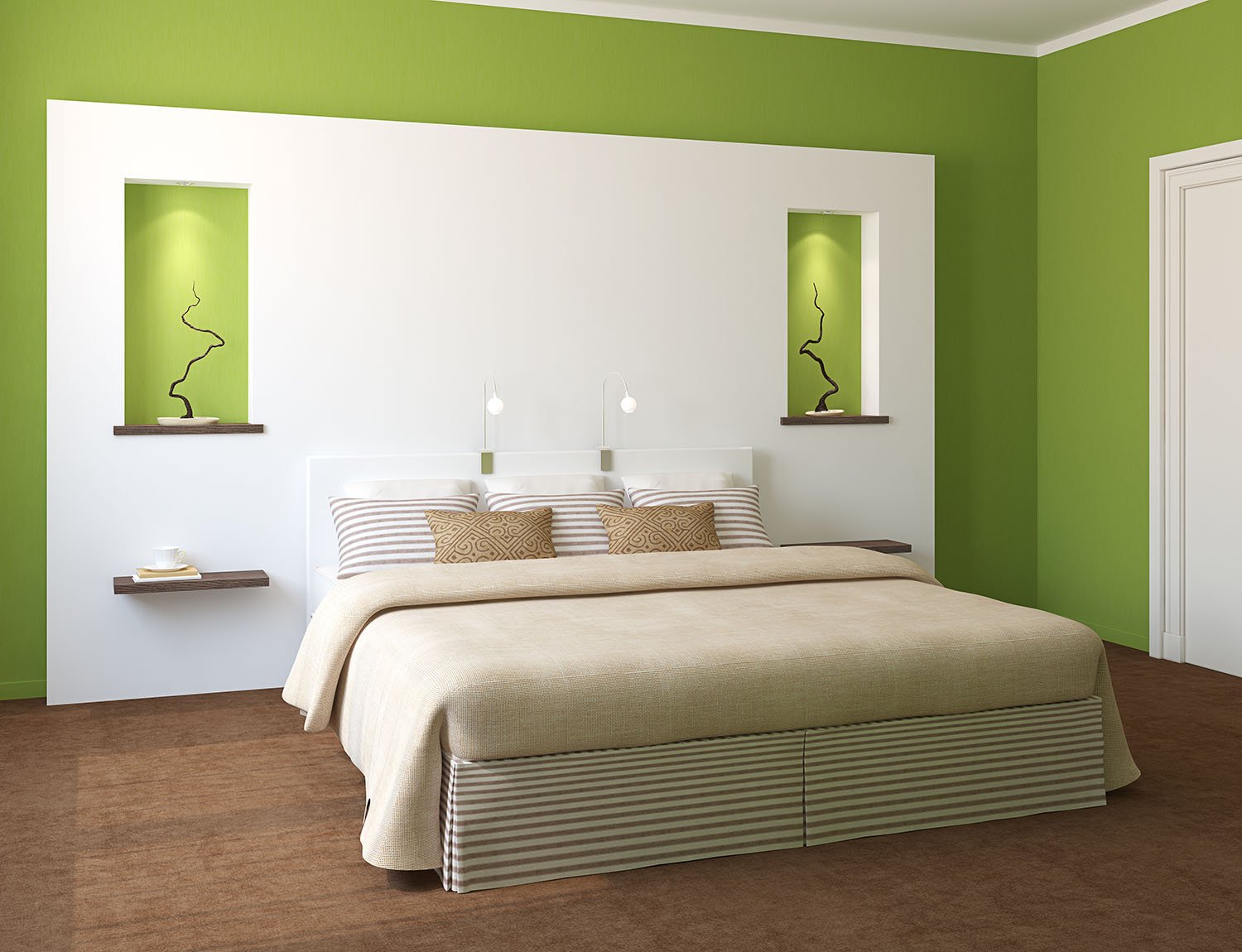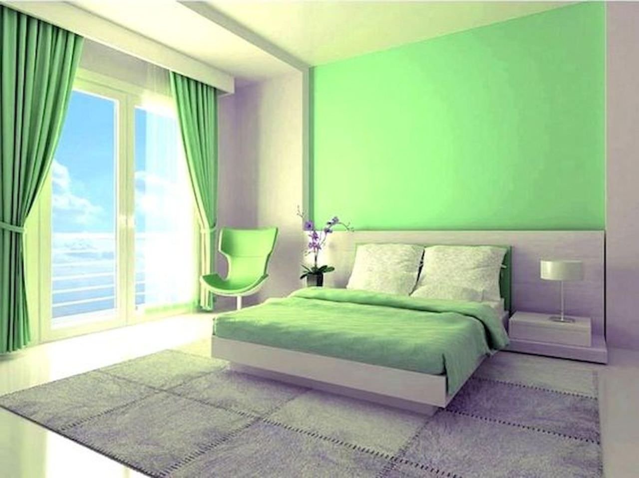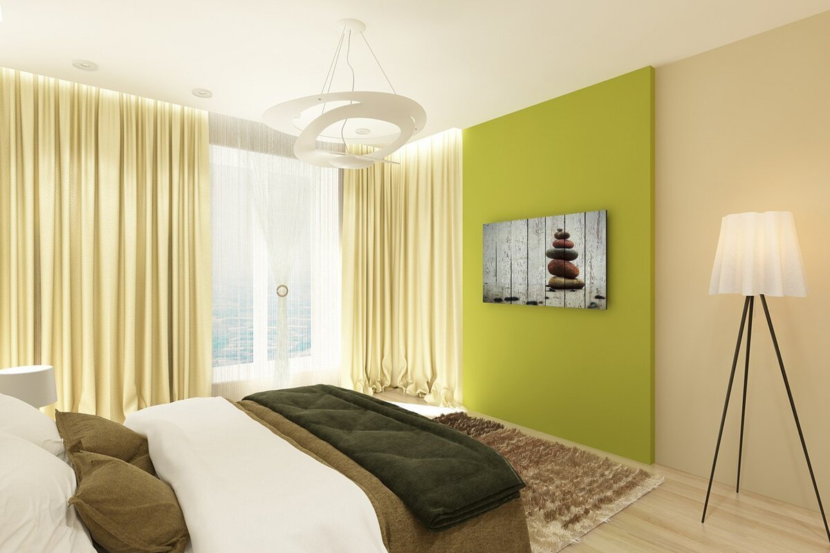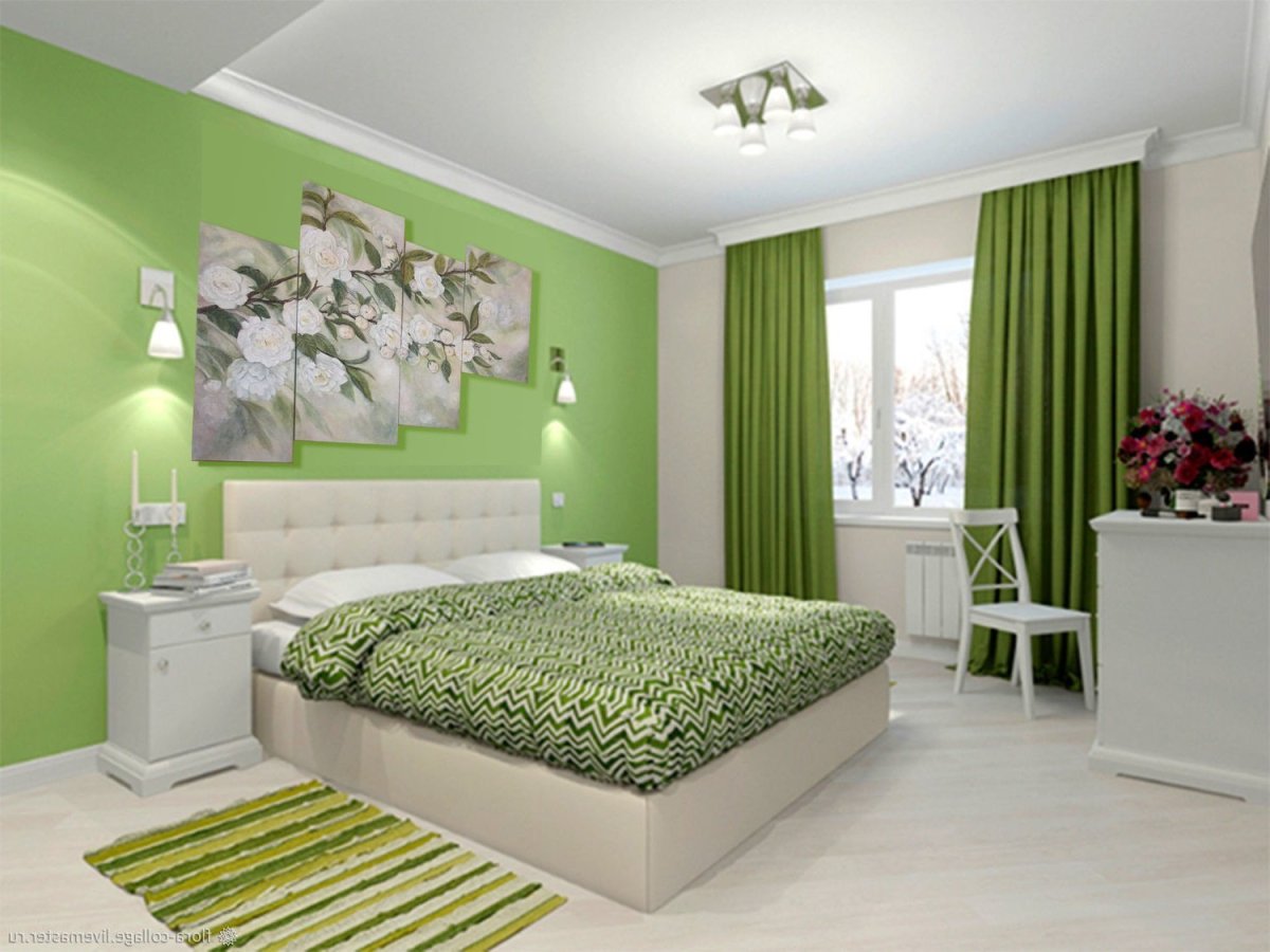 Зеленые стены в спальне