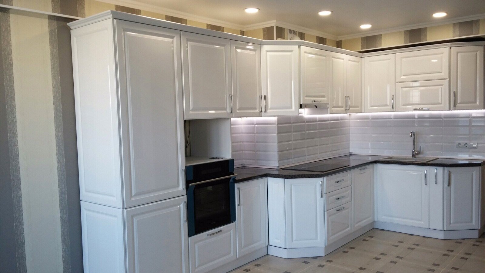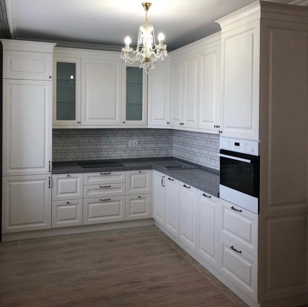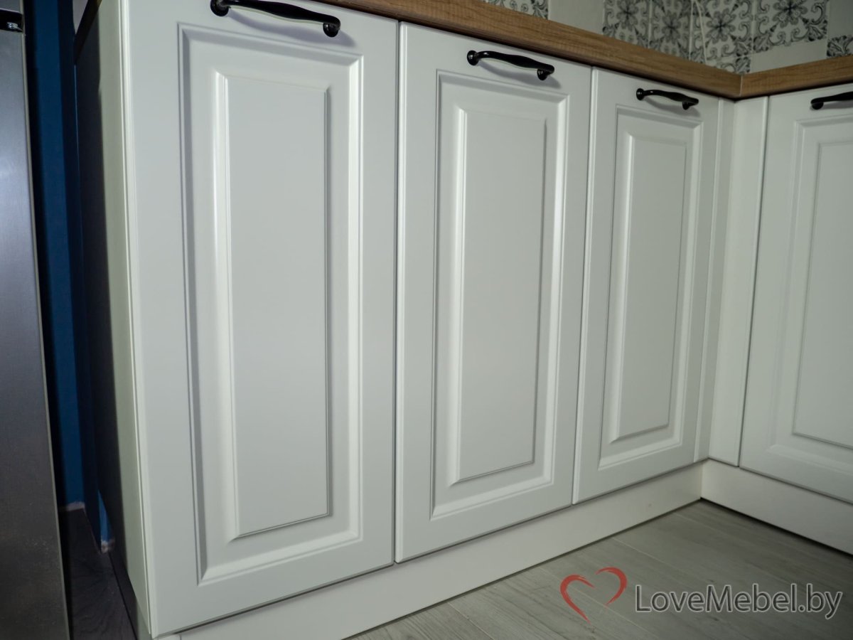 Угловая кухня белая с фрезеровкой