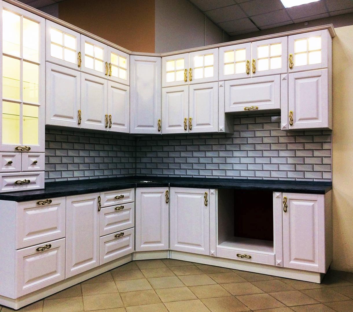 Кухня со сложной фрезеровкой