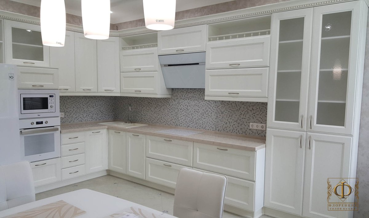 Кухня Неоклассика белая угловая