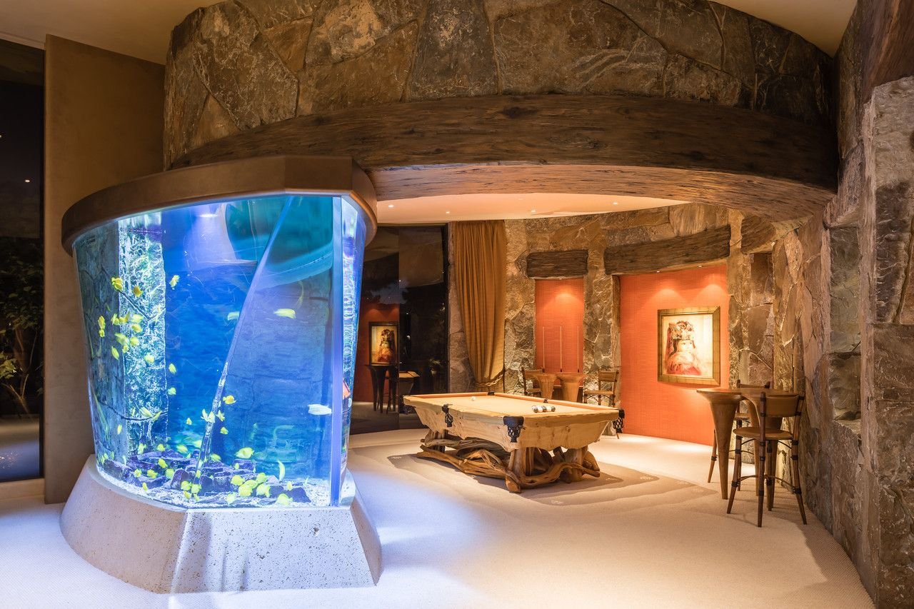 Полукруглый аквариум дома у американского футболиста