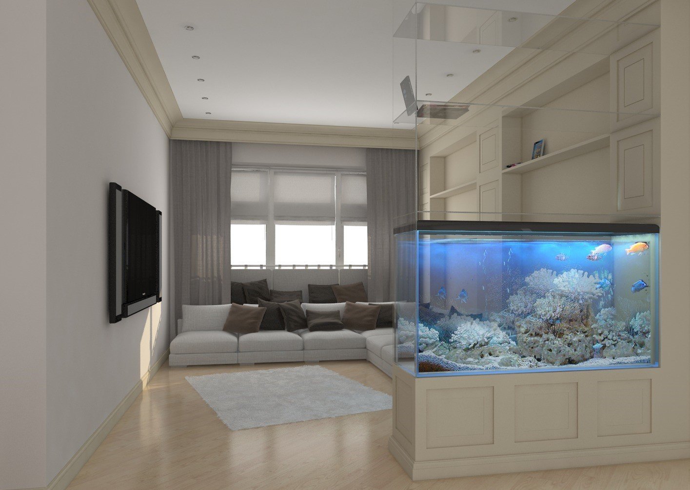 Гостиная с аквариумом