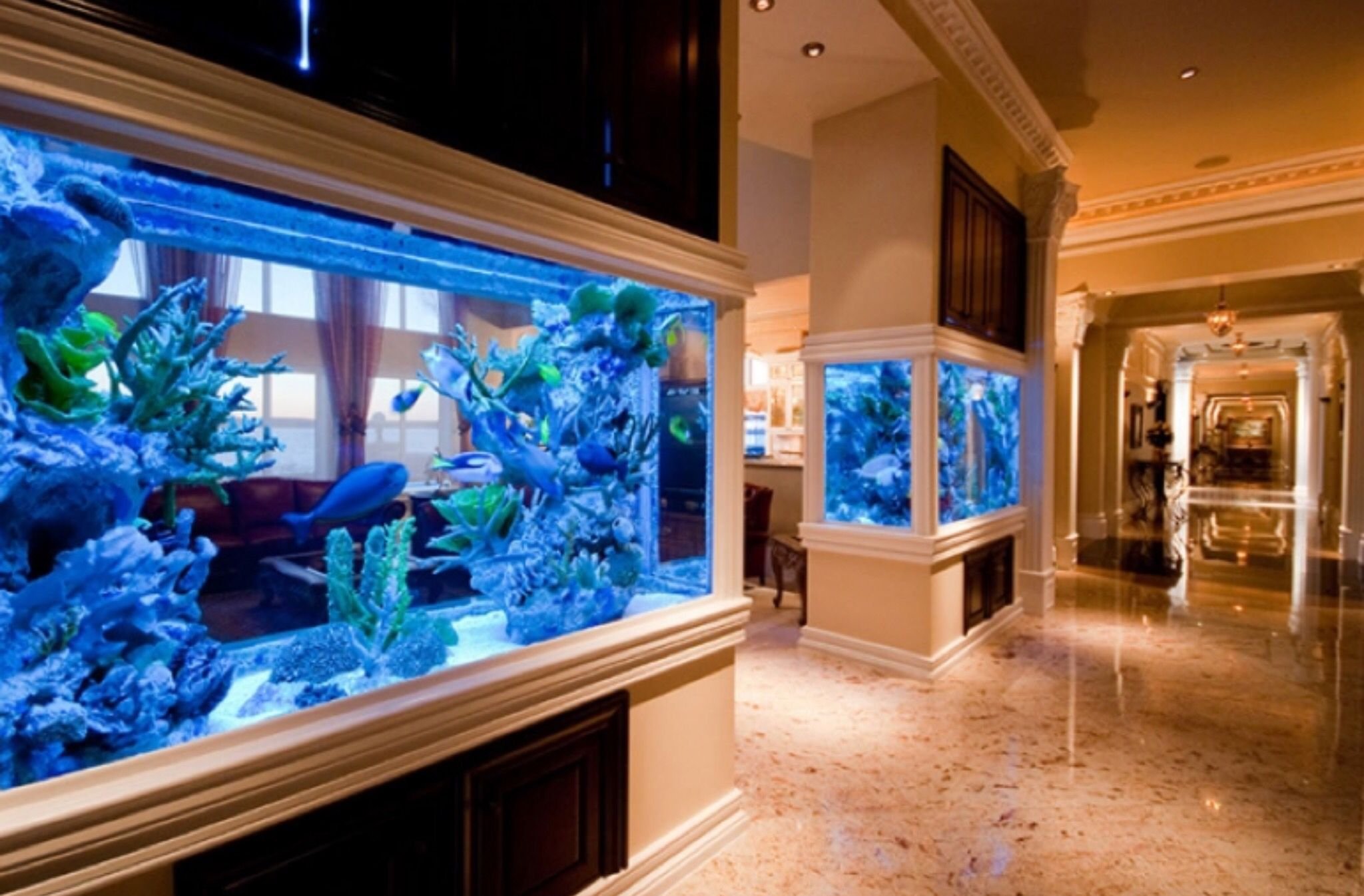 Огромные аквариумы в элитном доме
