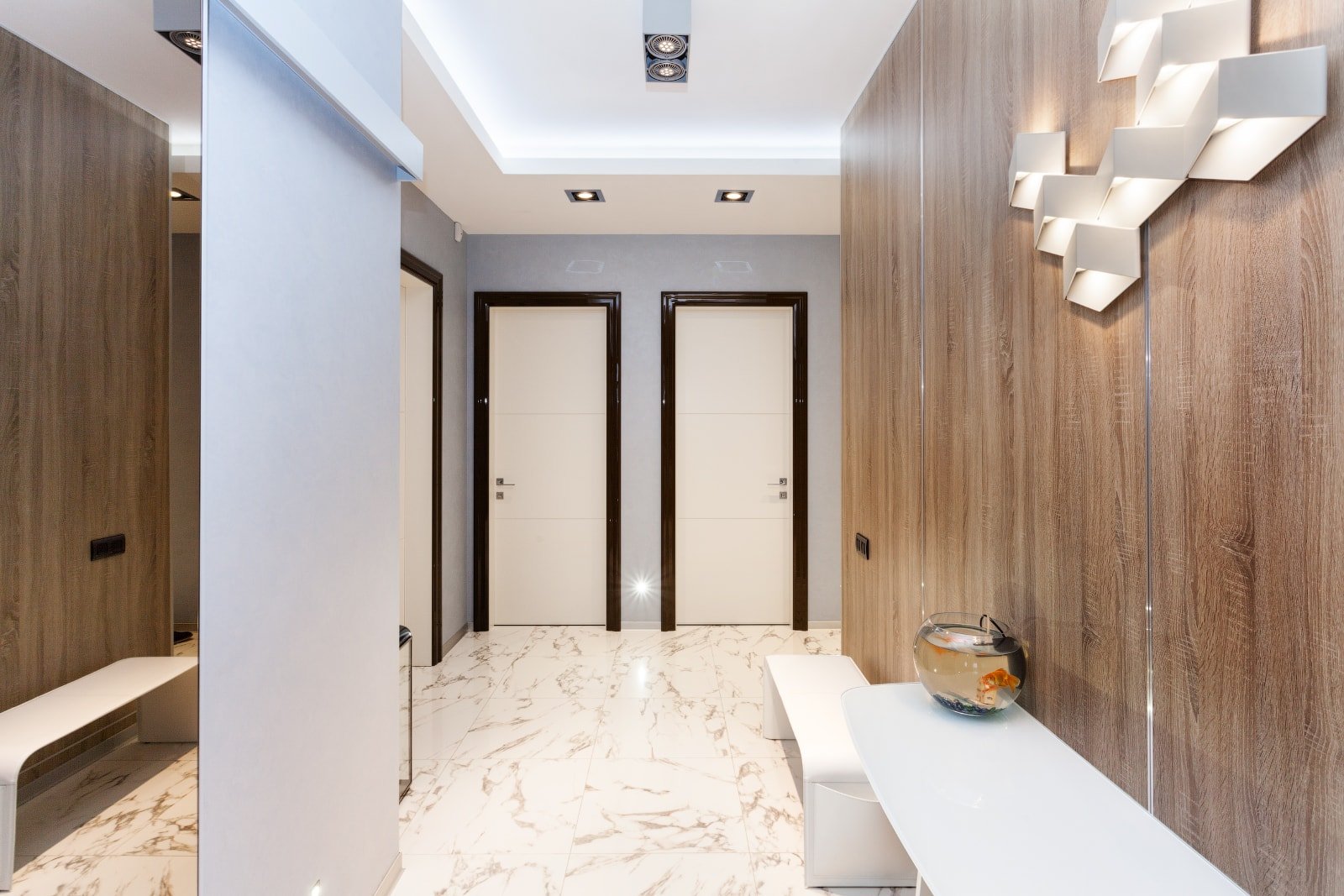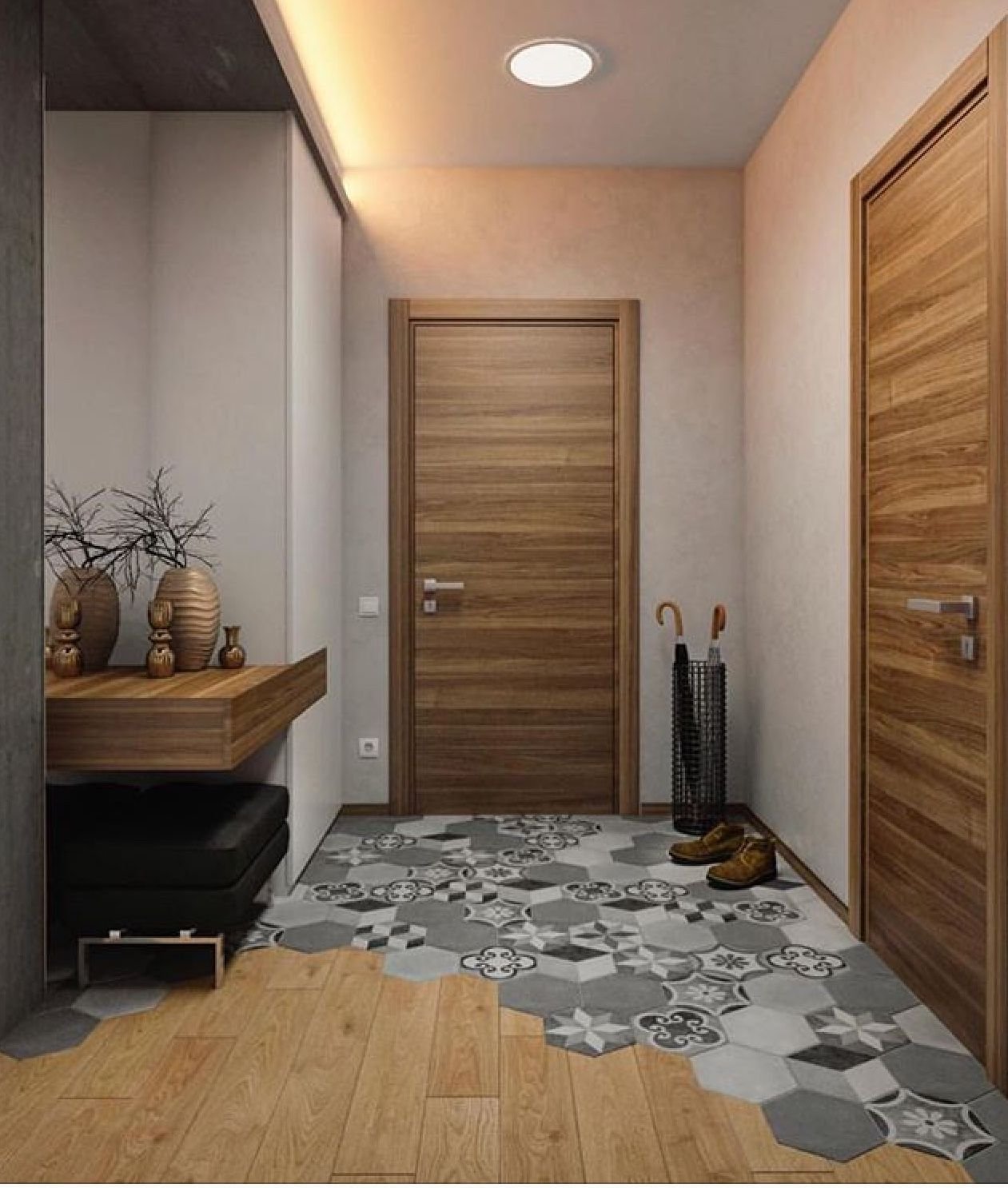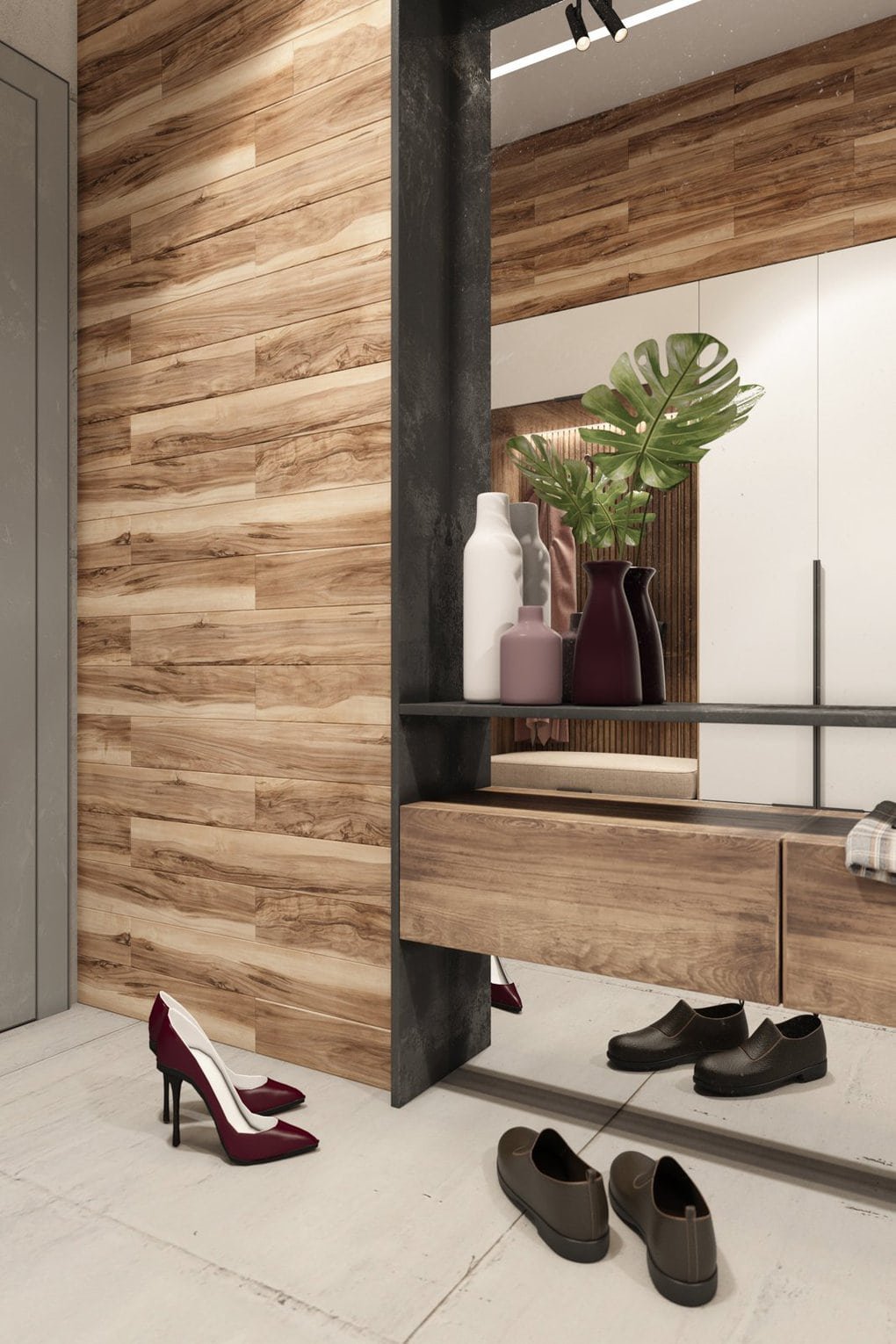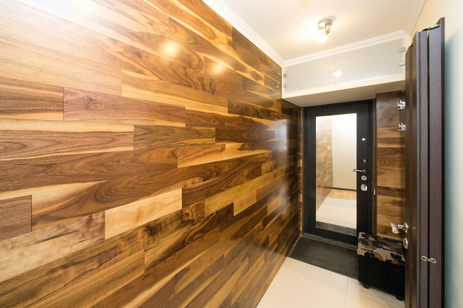 Ламинат в прихожей на стене комбинированный с зеркалом