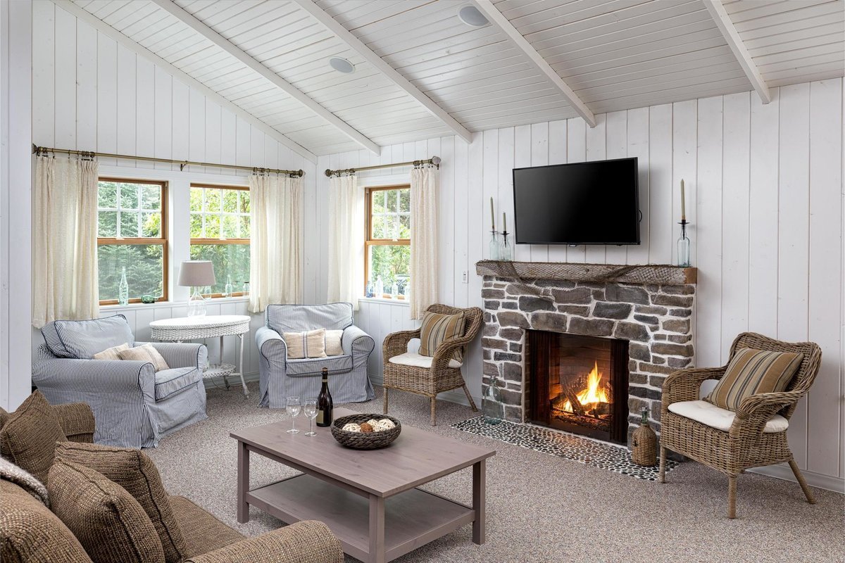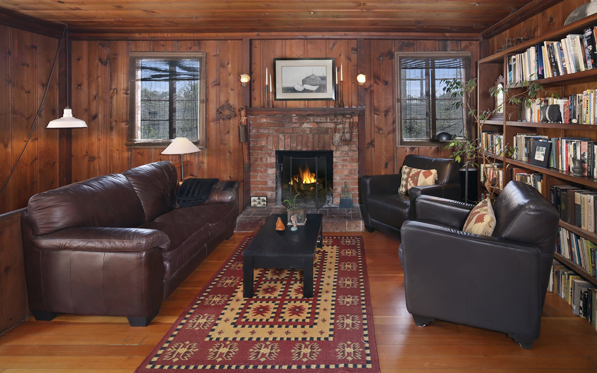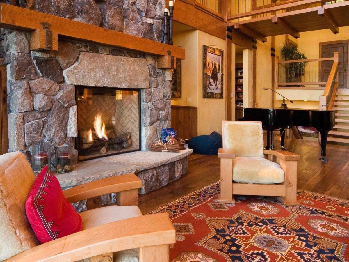 Деревенский стиль гостиной с камином