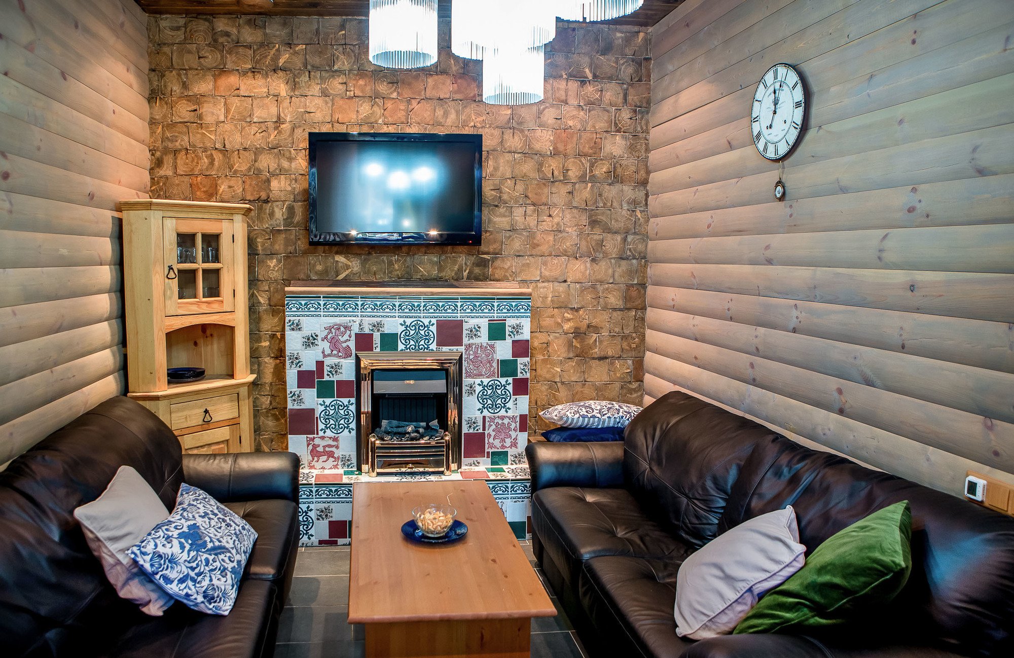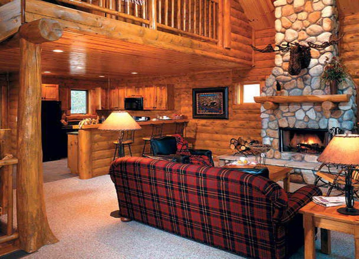 Гостиная в срубовом доме в стиле Кантри