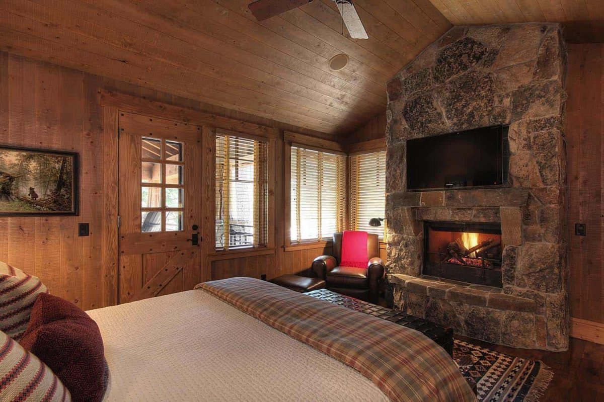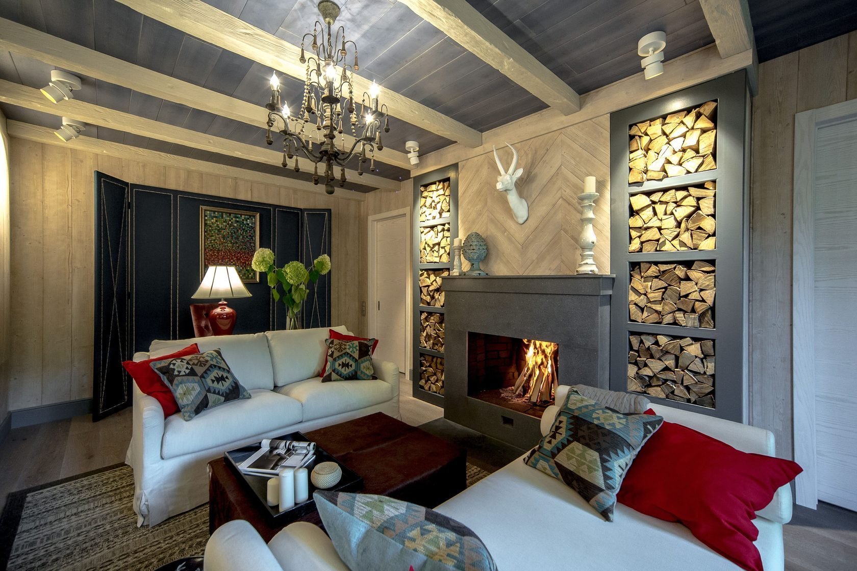 Камин в интерьере деревянного дома